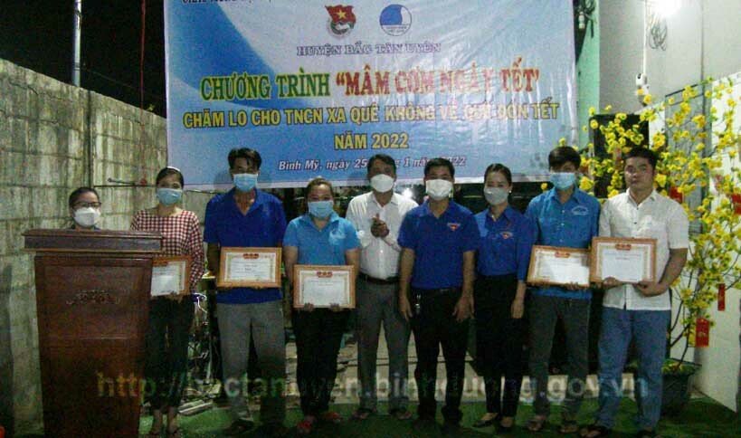 Dịp này, Huyện Đoàn Bắc Tân Uyên cũng đã trao tặng 5 phần quà cho thanh niên công nhân xa quê có hoàn cảnh khó khăn trên địa bàn xã Bình Mỹ, mỗi phần trị giá 500 ngàn đồng.