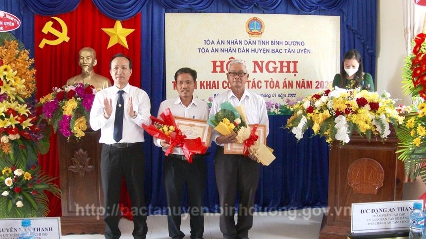 Tại Hội nghị, Tòa án nhân dân huyện Bắc Tân Uyên được tặng Bằng khen của Chánh án Tòa án nhân dân tối cao và giấy khen tập thể lao động xuất sắc, 12 cá nhân đạt danh hiệu chiến sĩ thi đua tòa án nhân dân và TAND tỉnh khen thưởng 04 cá có thành tích xuất sắc trong công tác thi đua năm 2021.