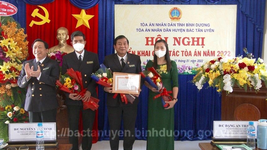 Sáng 21-01, Tòa án nhân dân huyện Bắc Tân Uyên tổ chức Hội nghị triển khai công tác năm 2022. Đến dự và chỉ đạo hội nghị có đồng chí Đặng An Thanh – Thẩm phán Cao cấp, Ủy viên Ban Cán sự Đảng, Phó Chánh án TAND tỉnh Bình Dương; đồng chí Trương Văn Phong - Phó Bí thư Huyện ủy, cùng đại diện lãnh đạo các cơ quan Công an hyện, Viện kiểm sát, Chi cục Thi hành án Dân sự huyện và toàn thể công chức, người lao động, Hội thẩm nhân dân.
