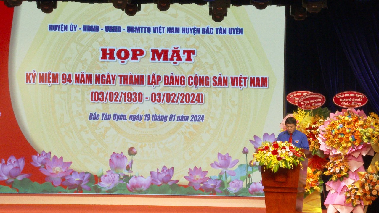 Tại buổi họp mặt, thay mặt tuổi trẻ huyện nhà, đồng chí Đỗ Ngọc Lợi – Bí thư Huyện Đoàn cảm ơn sự quan tâm, dìu dắt, tạo mọi điều kiện thuận lợi của Đảng để tuổi trẻ có thể phát triển toàn diện. Với tinh thần xung kích và lòng nhiệt huyết, tuổi trẻ huyện nhà nguyện quyết tâm đi theo con đường mà Đảng lãnh đạo, ra sức thi đua học tập, rèn luyện, lao động xây dựng huyện Bắc Tân Uyên ngày càng phồn vinh, hạnh phúc.