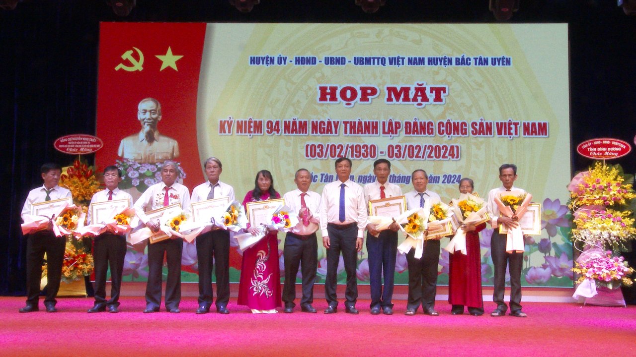 Nhằm ghi nhận công lao, đóng góp của những đảng viên đã có những cống hiến cho Đảng, cho sự nghiệp xây dựng và bảo vệ Tổ quốc, dịp này Huyện ủy Bắc Tân Uyên đã công bố quyết định và trao Huy hiệu đảng cho 9 đảng viên và khen thưởng các tập thể, đảng viên đạt thành tích xuất sắc.