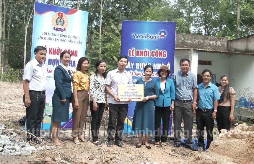 Sáng ngày 28-8, Liên đoàn lao động huyện Bắc Tân Uyên phối hợp cùng Liên đoàn lao động tỉnh Bình Dương tổ chức Lễ khởi công xây nhà ở “Mái ấm công đoàn” cho đoàn viên đặc biệt khó khăn. Đến dự Lễ khởi công có bà Nguyễn Hoàng Bảo Trân – Phó Chủ tịch LĐLĐ tỉnh; bà Phạm Thị Khánh Hà – Phó Giám đốc, Chủ tịch Công đoàn Ngân hàng Thương mại cổ phần Công thương Việt Nam, chi nhánh Bình Dương; ông Trần Hữu Phúc – Chủ tịch LĐLĐ huyện; ông Lê Văn Tưởng – Phó Chủ tịch HĐND xã Tân Định, cùng lãnh đạo Công đoàn cơ sở trường Tiểu học Tân Định.