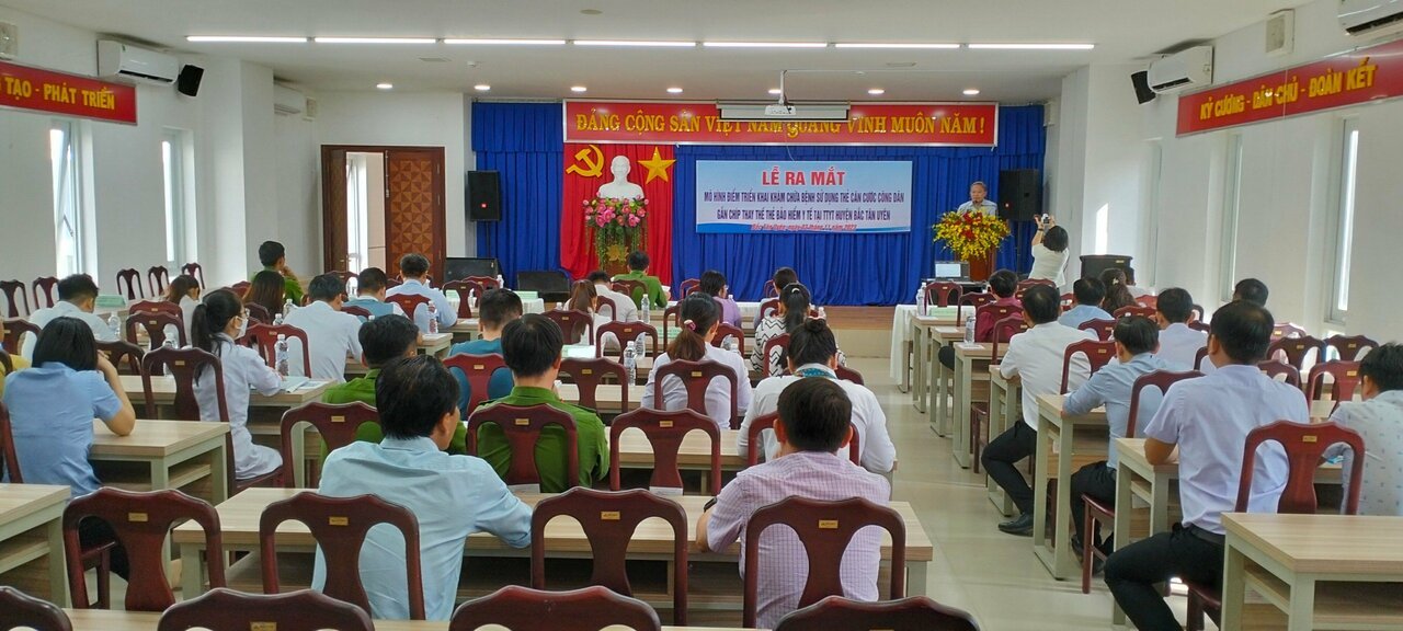 Sáng 03/11, tại Hội trường Trung tâm Y tế (TTYT) huyện Bắc Tân Uyên, Tổ công tác đề án 06 huyện Bắc Tân Uyên đã tổ chức Lễ ra mắt mô hình khám, chữa bệnh bằng thẻ căn cước công dân gắn chip điện tử thay thế thẻ bảo hiểm y tế. Dự và phát biểu tại Lễ ra mắt có Thượng tá Trương Văn Khâu - Phó Trưởng Công an huyện - Tổ phó Tổ công tác Đề án 06 huyện, cùng dự có Bác sĩ Nguyễn Văn Thệ - Giám đốc TTYT huyện, đại diện lãnh đạo một số ban, ngành, đoàn thể huyện và lãnh đạo UBND, Trưởng Trạm Y tế các xã, thị trấn trên địa bàn huyện.