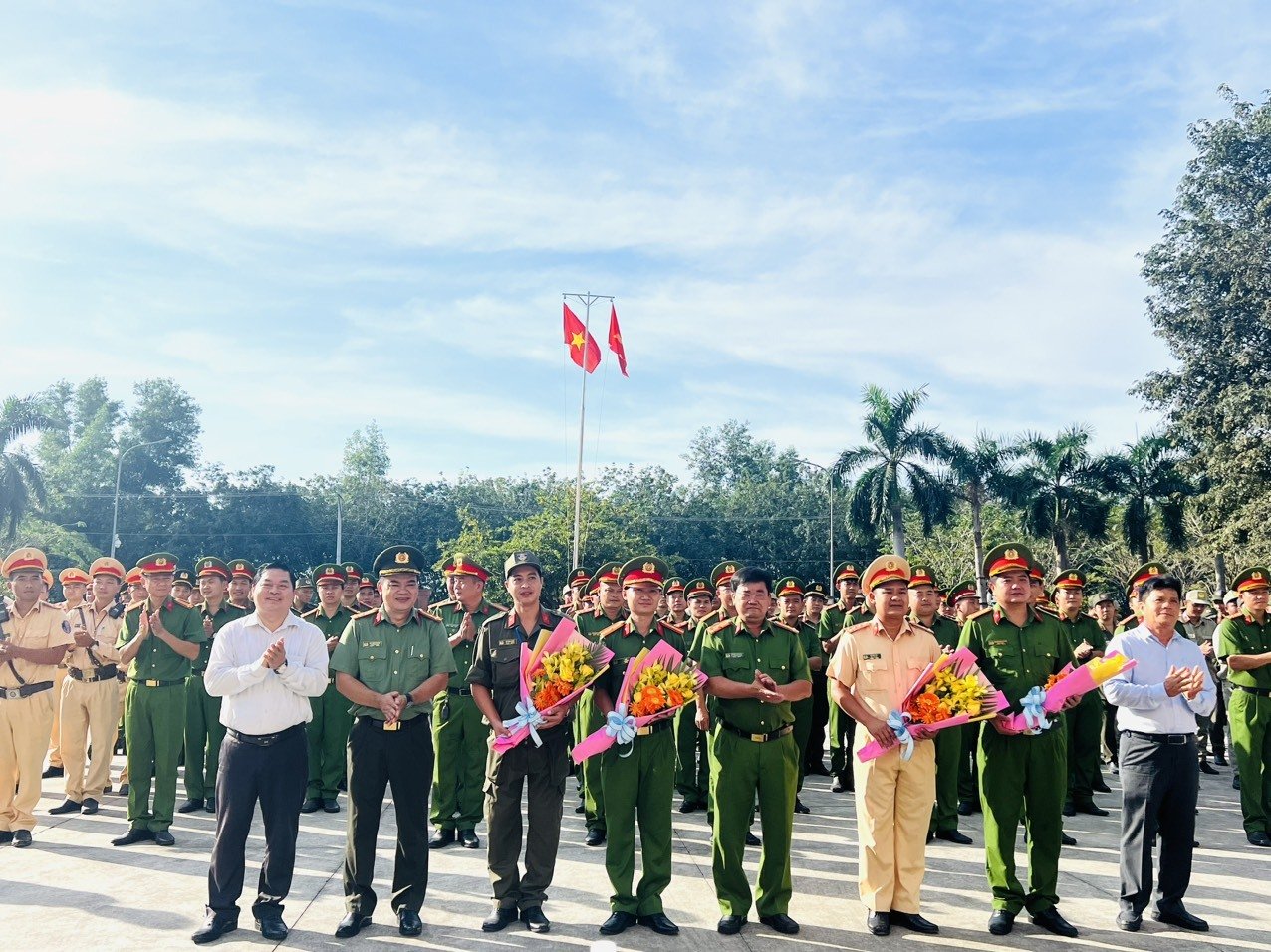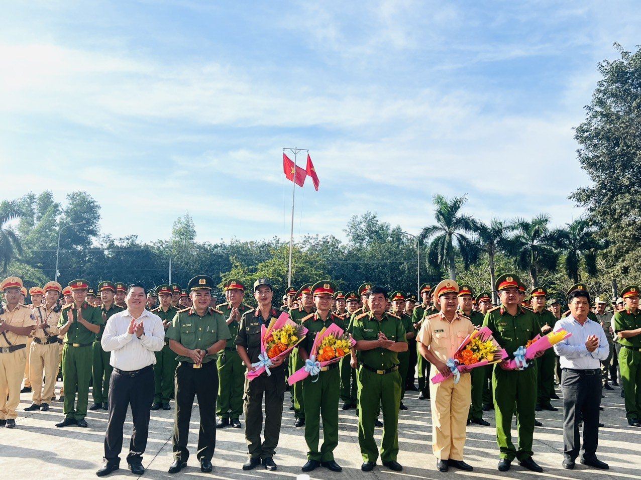 Tại buổi lễ, thượng tá Nguyễn Thành Trung-Trưởng công an huyện đã phát động thực hiện cao điểm tấn công trấn áp tội phạm, bảo đảm an ninh, trật tự dịp tết Nguyên đán Giáp Thìn 2024 trong toàn cán bộ, chiến sĩ lực lượng Công an huyện và các xã, thị trấn của huyện. Theo đó, cao điểm diễn ra từ ngày 15/12/2023 đến 29/2/2024. Trong thời gian này, lực lượng Công an trên địa bàn huyện sẽ tập trung tăng cường tuần tra, kiểm soát để bảo vệ tuyệt đối an toàn các mục tiêu trọng điểm các sự kiện quan trọng diễn ra trên địa bàn, không để xảy ra các vụ việc đột xuất, bất ngờ về an ninh trật tự. Kịp thời phát hiện, đấu tranh, ngăn chặn làm thất bại mọi âm mưu, hoạt động khủng bố, phá hoại, biểu tình, gây rối an ninh trật tự; xử lý kịp thời các thông tin xấu độc, tin giả, tin sai sự thật về đường lối, chủ trương của Đảng, pháp luật của Nhà nước. Chủ động tấn công trấn áp các loại tội phạm triệt xóa các băng nhóm tội phạm, không để xảy ra trọng án, gây bức xúc dư luận. Kiểm soát, kéo giảm phạm pháp hình sự 5% so với thời gian liền kề, nhất là án rất nghiêm trọng và đặc biệt nghiêm trọng; phấn đấu tỷ lệ điều tra, khám phá án hình sự đạt trên 85%, riêng án rât nghiêm trọng và đặc biệt nghiêm trọng đạt từ 95% trở lên. Tập trung truy bắt, vận động đầu thú các đối tượng truy nã, nhất là đối tượng nguy hiểm, đặc biệt nguy hiểm, hạn chế để phát sinh đối tượng truy nã mới.