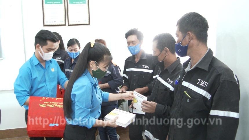Ngày 26-1, Liên đoàn lao động huyện Bắc Tân Uyên đã tổ chức các đoàn đến thăm và tặng quà cho đoàn viên Công đoàn, người lao động khó khăn nhân dịp Tết Nguyên đán 2022.