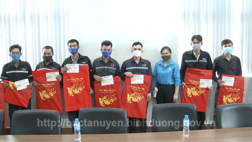 Tại các nơi đến thăm, Lãnh đạo LĐLĐ huyện đã ân cần thăm hỏi tình hình sản xuất kinh doanh, việc thực hiện các chế độ chính sách đối với người lao động tại các doanh nghiệp; gửi lời chúc mừng năm mới sức khỏe, an khang, thịnh vượng đến người lao động và gia đình nhân dịp Tết Nguyên đán Nhâm Dần 2022. Đồng thời, Liên đoàn Lao động huyện Bắc Tân Uyên cũng đã trao tặng 1.000 phần quà mỗi phần trị giá 500.000 đồng cho đoàn viên Công đoàn, người lao động khó khăn không có điều kiện về quê đón tết.
