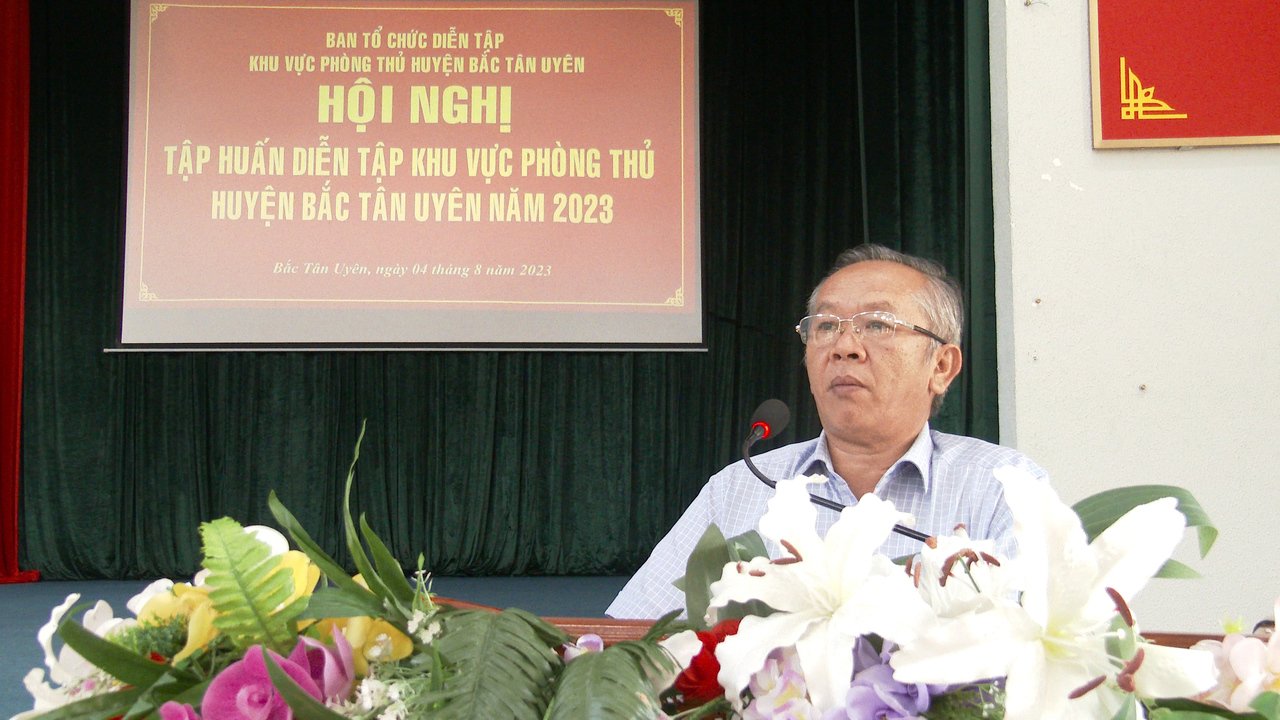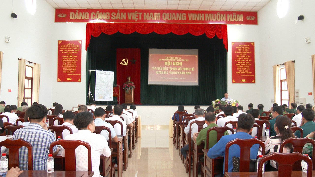 Sáng ngày 4/8, huyện Bắc Tân Uyên hội nghị tập huấn diễn tập khu vực phòng thủ huyện năm 2023. Dự Hội nghị diễn tập có Ông Thái Thanh Bình-TUV-Bí thư Huyện ủy chủ trì hội nghị, cùng dự có các ông/bà là thành viên Ban tổ chức, thành viên Tổ tham mưu, Tổ giúp việc Ban tổ chức diễn tập khu vực phòng thủ huyện năm 2023; Chủ tịch HĐND, UBND, Trưởng Công an, chỉ huy trưởng Ban chỉ huy quân sự, các đoàn thể 3 xã, thị trấn Tân Thành, Bình Mỹ, Thường Tân.