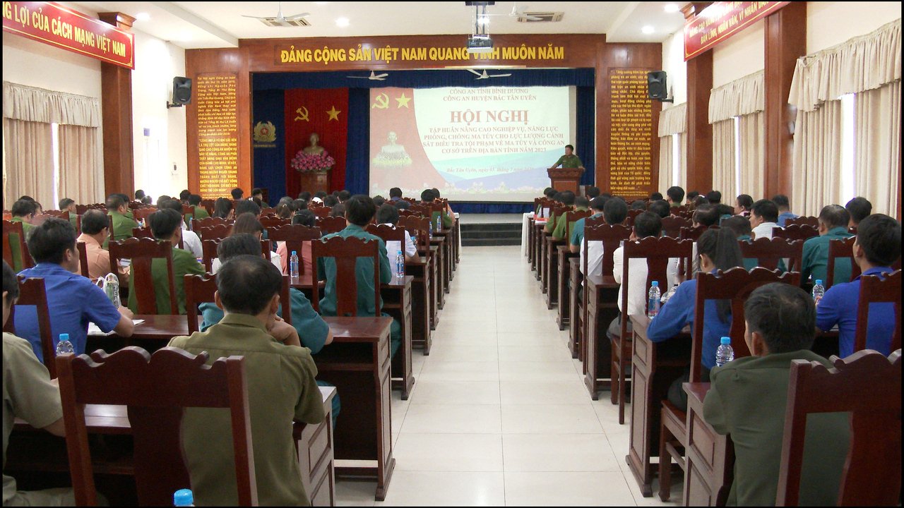 Sáng 5/7, Công an huyện Bắc Tân Uyên tổ chức Hội nghị tập huấn Dự án 2 và Dự án 3 của Bộ Công an về đấu tranh phòng chống tội phạm ma túy tại các tuyến trọng điểm và giải quyết điểm, tụ điểm, chuyển hóa địa bàn trọng điểm phức tạp về ma túy trên địa bàn các xã, thị trấn. Dự và triển khai nội dung tập huấn có Thượng tá Đỗ Ngọc Ẩn – Trưởng Phòng Cảnh sát phòng chống ma tuý Công an tỉnh Bình Dương; Thượng tá Hồ Hoàng Thanh – Phó Trưởng Công an huyện, Đại diện BCĐ 138 huyện; lãnh đạo UBND, Công an, Quân sự, Công chức Tư pháp, Đoàn thanh niên các xã, thị trấn và Trưởng BĐH ấp, khu phố trên địa bàn huyện.