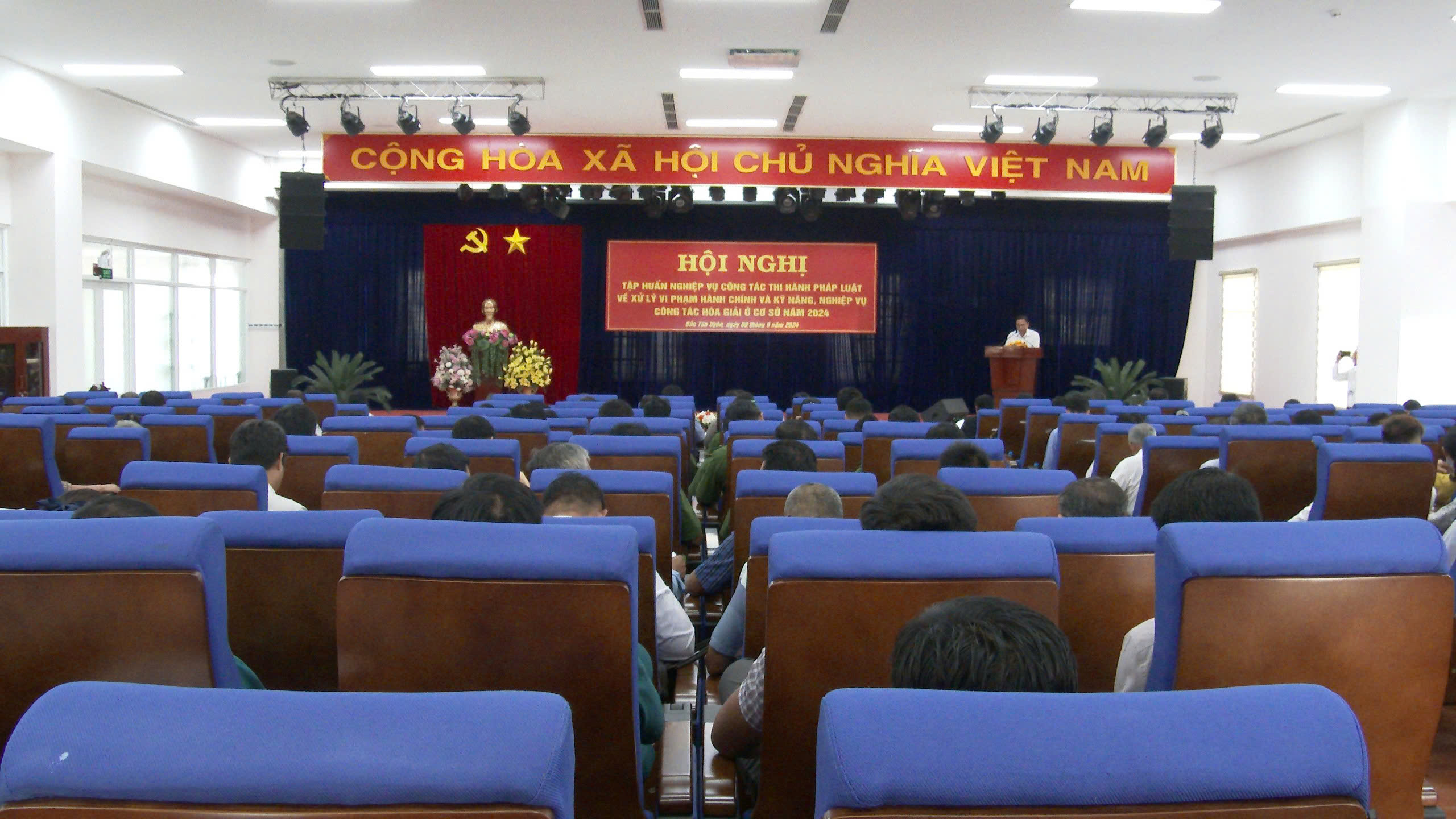 Sáng ngày 6/9, Hội đồng phối hợp phổ biến, giáo dục pháp luật huyện Bắc Tân Uyên hội nghị tổ chức tập huấn nghiệp vụ công tác thi hành pháp luật về xử lý vi phạm hành chính và kỹ năng, nghiệp vụ công tác hòa giải ở cơ sở năm 2024 cho hơn 400 đại biểu là thủ trưởng, cán bộ công chức phụ trách công tác thi hành pháp luật về xử lý vi phạm hành chính; cán bộ tư pháp, hộ tịch các xã, thị trấn; thành viên các Tổ hòa giải trên địa bàn huyện.