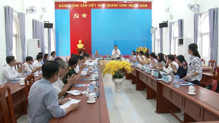 Ông Thái Thanh Bình -Tỉnh Ủy viên-Bí thư Huyện ủy-Chủ tịch UBND huyện phát biểu tại buổi làm việc