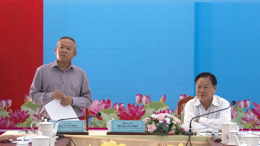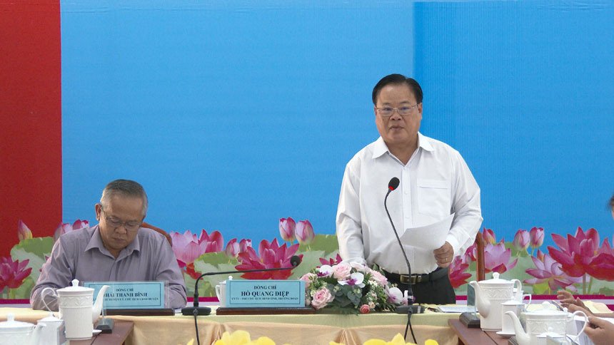 Ông Hồ Quang Điệp - Uỷ viên Thường vụ Tỉnh uỷ-Phó Chủ tịch Hội đồng nhân dân tỉnh phát biểu tại buổi làm việc