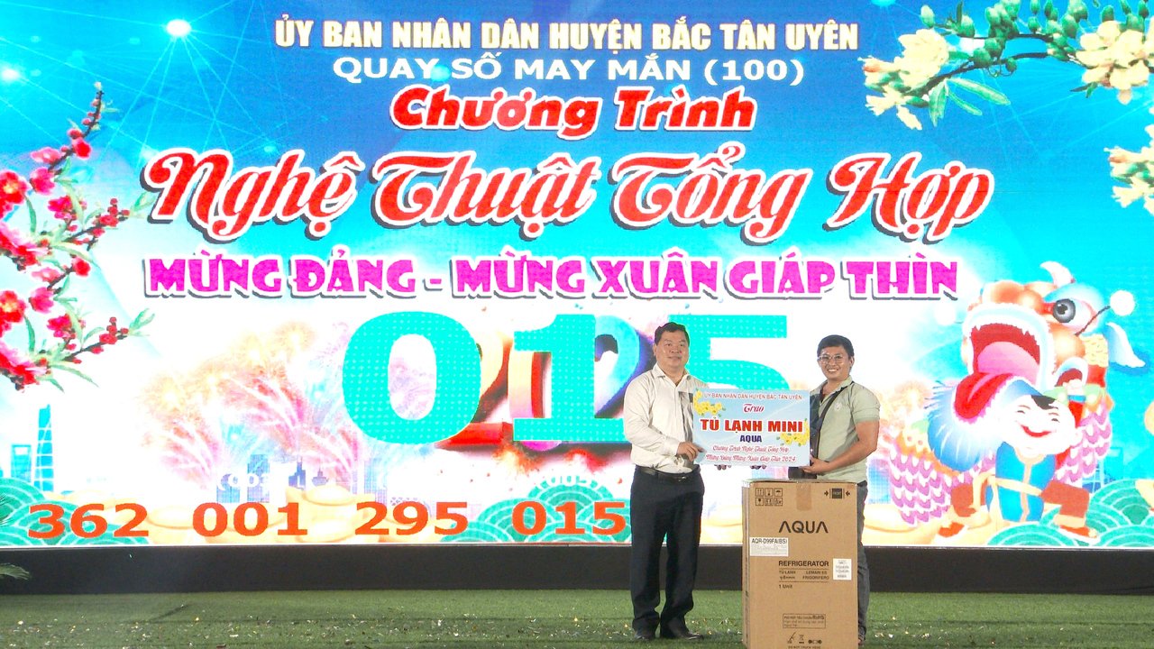 Hòa chung không khí của cả nước chào đón năm mới Giáp Thìn 2024. Tối ngày 9/2/2024 (tức tối 30 tết), tại Quãng trường Trung tâm hành chính huyện Bắc Tân Uyên, Huyện ủy – HĐND – UBND huyện Bắc Tân Uyên tổ chức Chương trình nghệ thuật tổng hợp mừng Đảng, mừng Xuân Giáp Thìn 2024. Dự chương trình có đồng chí Thái Thanh Bình – Tỉnh ủy viên, Bí thư huyện ủy; đồng chí Võ Văn Tính – Phó bí thư Thường trực Huyện uỷ, Chủ tịch HĐND huyện; đồng chí Nguyễn Thành Thường – Phó bí thư Huyện uỷ, Chủ tịch UBND huyện cùng các đồng chí trong Ban thường vụ huyện ủy, lãnh đạo một số ban, ngành huyện; cán bộ, công chức, viên chức, người lao động cùng đông đảo các tầng lớp nhân dân trên địa bàn về chung vui, thưởng thức và cổ vũ chương trình.