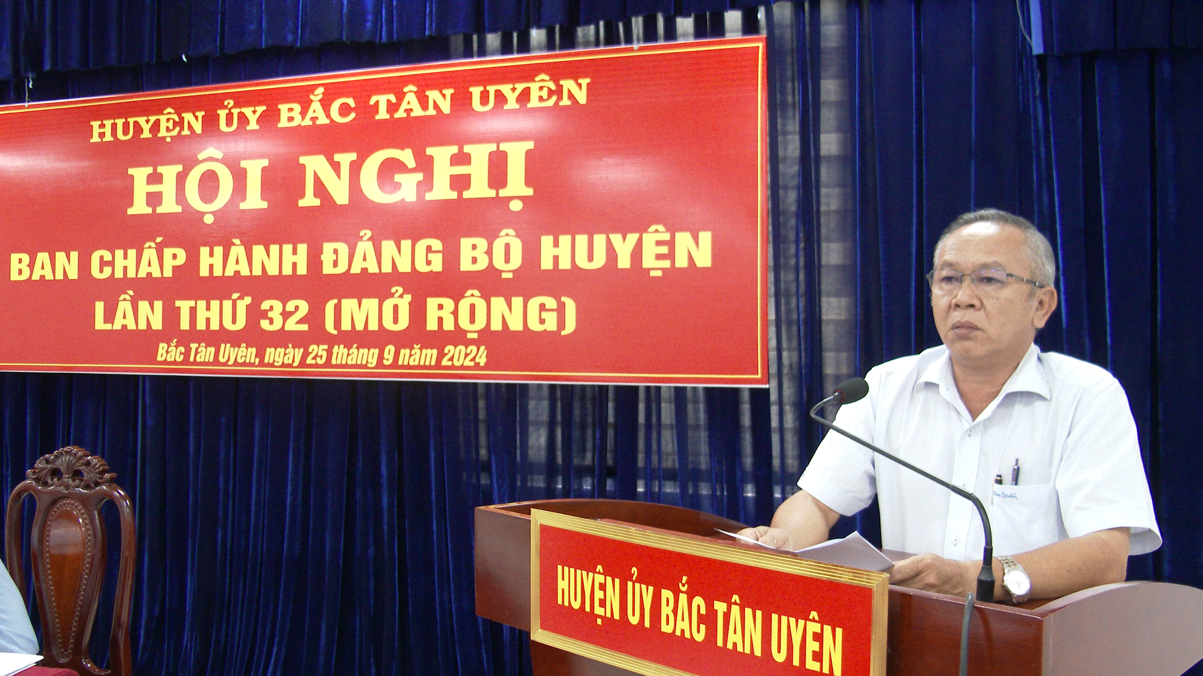Sáng ngày 25/9, Huyện uỷ Bắc Tân Uyên tổ chức hội nghị Ban chấp hành Đảng bộ huyện lần thứ 32 mở rộng nhằm đánh giá tình hình phát triển kinh tế - xã hội, quốc phòng - an ninh; công tác xây dựng đảng, hệ thống chính trị 9 tháng đầu năm; triển khai phương hướng, nhiệm vụ 3 tháng cuối năm 2024. Dự hội nghị có đồng chí Võ Văn Bá - Uỷ viên Thường vụ Tỉnh uỷ, đồng chí Thái Thanh Bình -Tỉnh uỷ viên - Bí thư Huyện uỷ, đồng chí Võ Văn Tính - Phó Bí thư Thường trực Huyện uỷ - Chủ tịch HĐND huyện, đồng chí Nguyễn Thành Thường - Phó Bí thư Huyện uỷ - Chủ tịch UBND huyện; các đồng chí uỷ viên Thường vụ, uỷ viên Ban chấp hành Đảng bộ huyện, Bí thư các chi, đảng bộ, lãnh đạo các cơ quan, ban ngành, đoàn thể huyện.