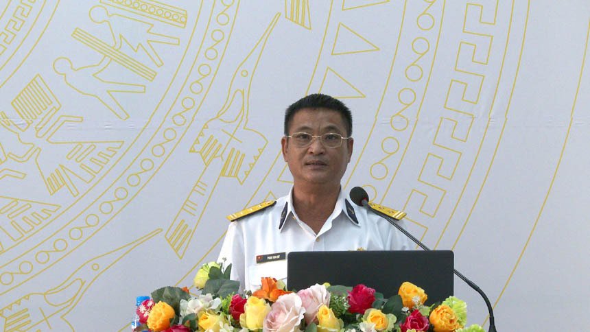 Đồng chí Thượng tá Phạm Văn Quý – Phó Chính ủy Hải đoàn 129, Quân cảng Sài Gòn thông tin đến hội nghị tình hình Biển Đông thời gian gần đây