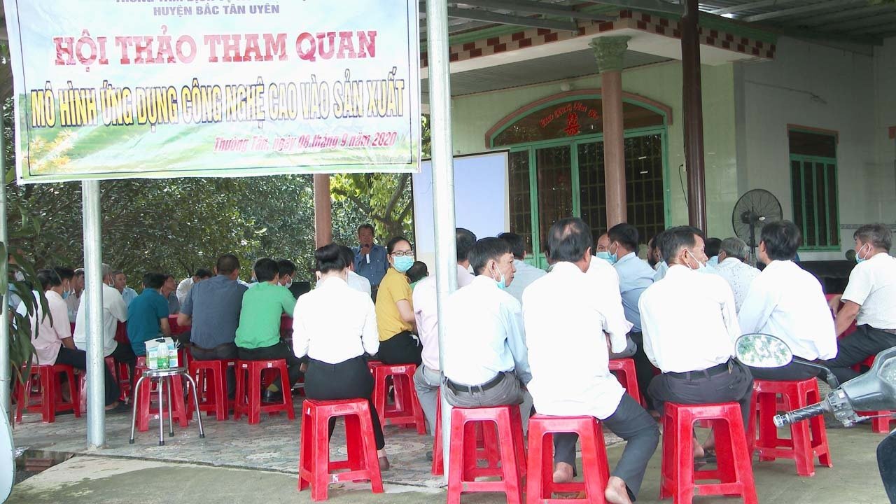 Tại buổi Hội thảo ông Huỳnh Hữu Tấn - Phó Giám đốc Trung tâm Dịch vụ Nông nghiệp huyện Bắc Tân Uyên đã truyền đạt một số kiến thức, kinh nghiệm cũng như giới thiệu cho hội viên nông dân về mô hình của ông Nguyễn Văn Cơ ấp 2, xã Thường Tân gồm “Trồng dưa lưới trong nhà màng hở” và cách xử lý ra hoa trên cây bưởi.