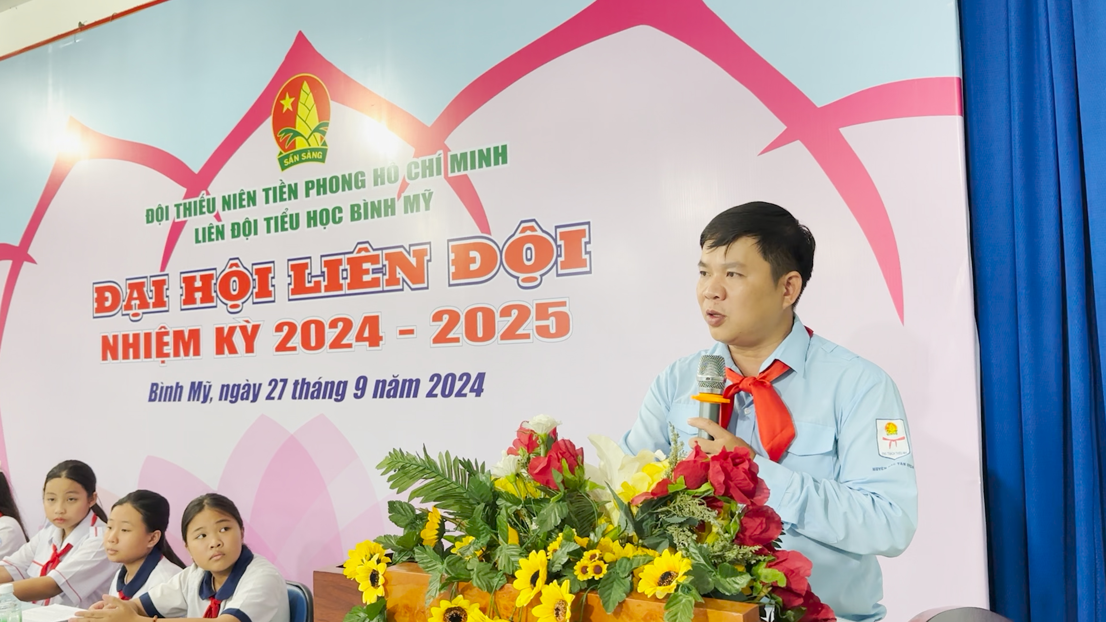 Dự và phát biểu tại Đại hội, anh Đỗ Ngọc Lợi - Bí thư Huyện Đoàn - Chủ tịch Hội đồng Đội huyện đánh giá cao những kết quả mà Liên đội đã đạt được trong nhiệm kỳ 2023-2024; Bên cạnh đó, đề nghị Liên đội tiếp tục phát huy kết quả những năm học trước, cụ thể hóa kế hoạch hoạt động năm học bằng một kế hoạch tổng thể các hoạt động trọng tâm, trọng điểm của Liên đội hàng tháng. Để từ đó Tổng phụ trách Đội, Liên đội chủ động tham mưu BGH nhà trường tổ chức tốt các hoạt động cho các em, tạo tính chủ động trong hoạt động Đội. Đẩy mạnh hoạt động tuyên truyền giáo dục về lịch sử địa phương cho các em. Liên đội cũng cần tập trung giúp các em hiểu rõ về truyền thống Đảng - Đoàn - Đội, phát động thực hiện các công trình, phần việc măng non hướng tới chào mừng ngày lễ lớn của đất nước với các hoạt động ý nghĩa, thiết thực, gắn với phong trào thiếu nhi tại đơn vị. Tiếp tục đẩy mạnh thực hiện mô hình, cách làm hay nâng cao tính sáng tạo, rèn luyện kỹ năng sống cho đội viên, thiếu nhi thông qua các tiết học ngoại khóa…Tạo môi trường cho thiếu nhi thi đua rèn luyện sức khỏe, phát triển thẩm mỹ, kỹ năng thực hành xã hội; phát huy quyền làm chủ, đại diện nguyện vọng, tiếng nói của trẻ em trong Đội viên, thiếu nhi.