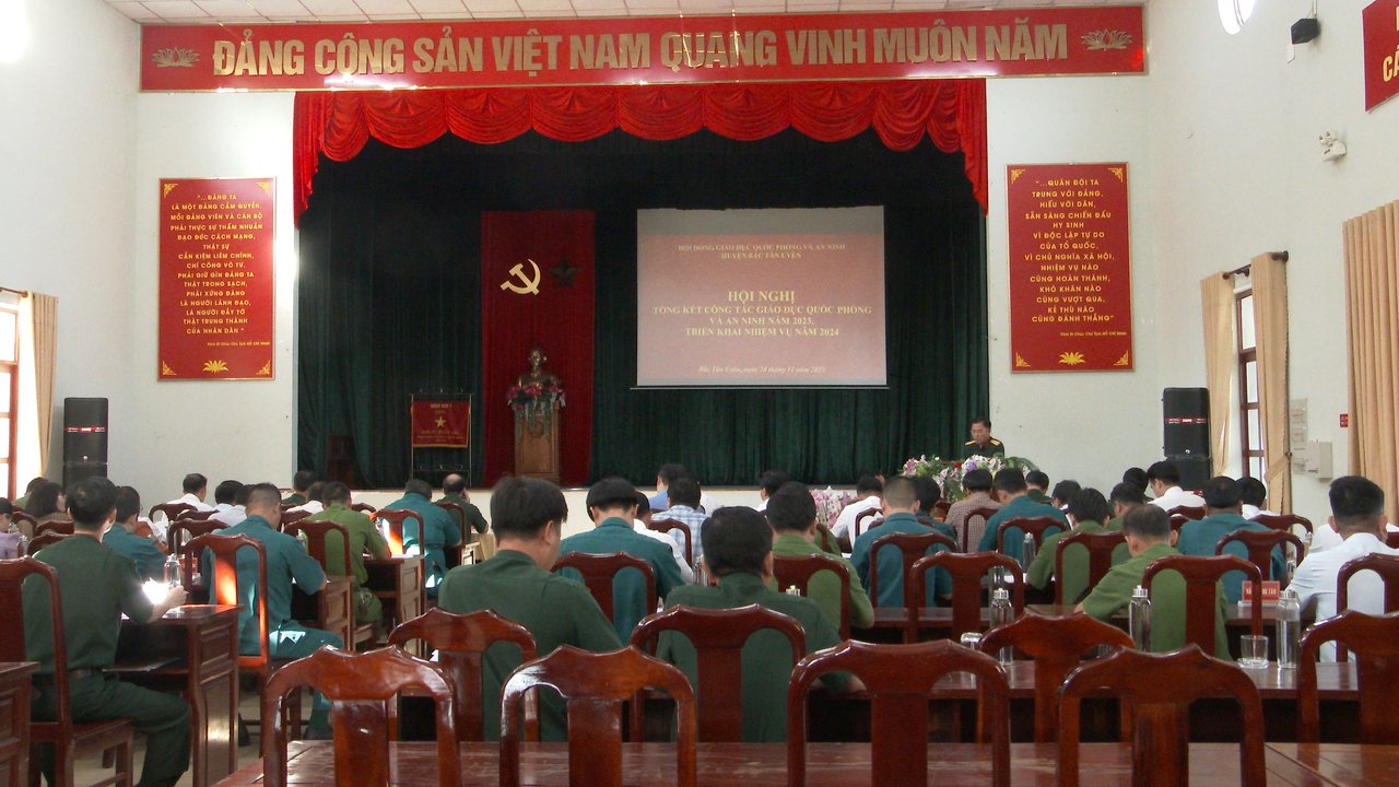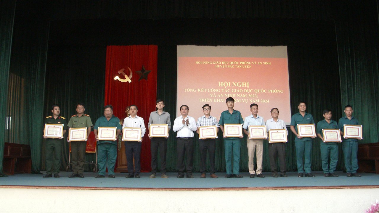 (Sáng ngày 28/12, huyện Bắc Tân Uyên tổ chức hội nghị tổng kết công tác giáo dục quốc phòng và an ninh năm 2023. Dự hội nghị có đại tá Nguyễn Đình Chuẩn-Chính ủy Bộ chỉ huy quân sự tỉnh, ông Trần Văn Phương-Ủy viên thường vụ-Phó Chủ tịch UBND huyện-Chủ tịch Hội đồng Giáo dục QP&AN huyện, ông Lưu Hữu Duyên-Ủy viên Thường vụ Huyện ủy-Trưởng ban Tuyên giáo-Giám đốc Trung tâm Chính trị huyện, lãnh đạo các ban, ngành, đoàn thể huyện; thành viên Hội đồng Giáo dục QP&AN các xã, thị trấn, nông trường cao su Nhà Nai.