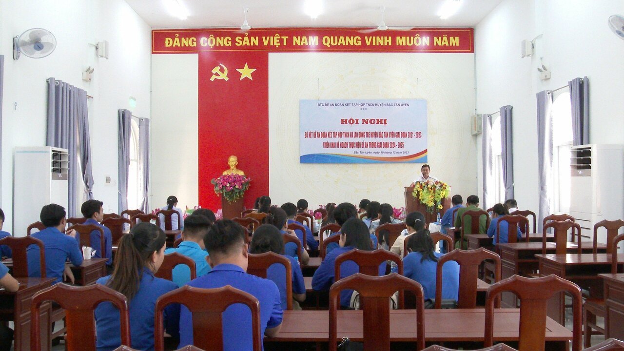 Sáng ngày 19/12, Ban Tổ chức Đề án TNCN huyện tổ chức tổng kết Đề án “Đoàn kết, tập hợp thanh niên công nhân và Lao động trẻ tỉnh Bình Dương giai đoạn 2022 - 2025” trên địa bàn huyện Bắc Tân Uyên năm 2023. Tham dự hội nghị có ông Phạm Văn An - UVTV Huyện uỷ, Trưởng Ban dân vận Huyện ủy, Chủ tịch UBMTTQ Việt Nam huyện, Trưởng Ban Tổ chức Đề án TNCN huyện; Bà Võ Thị Tuyết Nhung - Phó Chủ tịch UBMTTQ huyện cùng các thành viên trong BTC đề án và các đại biểu Thường trực BTC Đề án các xã, thị trấn; cán bộ Đề án, Chi hội trưởng, Bí thư Chi đoàn TNCN trên địa bàn huyện.