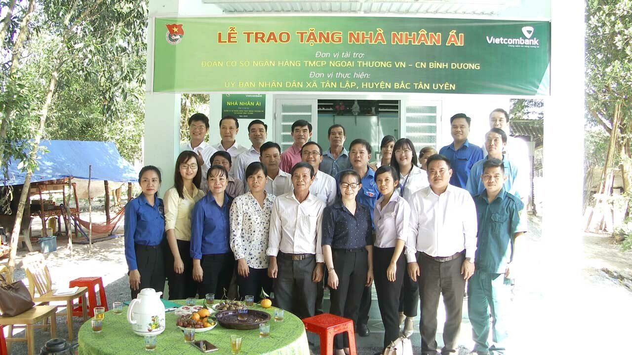 Căn nhà được trao cho chị Hồ Thị Tiên, sinh năm 2001, ấp 5, xã Tân Lập, huyện Bắc Tân Uyên, được xây dựng theo quy cách nhà cắp 4, một mái, tường xây tô quét vôi, mái lợp tôn, đòn tay sắt, nền gạch men, cửa khung sắt gắn kiếng với tổng diện tích xây dựng 40,5 m2, tổng trị giá 70 triệu đồng. Trong đó, Ngân hàng Thương mại cổ phần Ngoại thương Việt Nam chi nhánh Bình Dương hỗ trợ 50 triệu đồng, UBND xã Tân Lập vận động hỗ trợ 15 triệu đồng và gia đình đóng góp thêm 5 triệu đồng.
