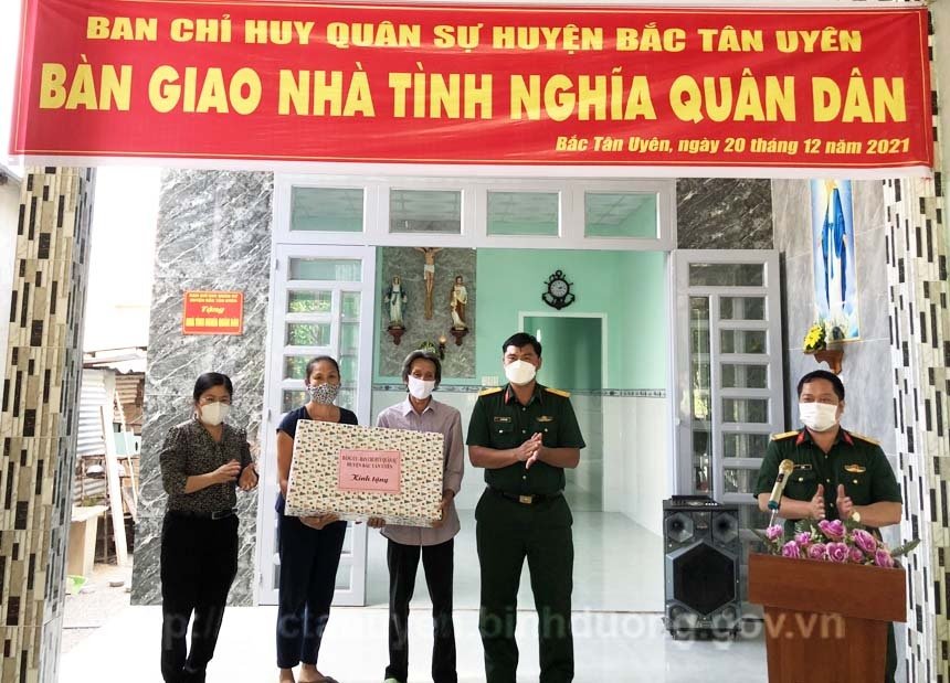 Thiết thực chào mừng kỷ niệm 77 năm ngày thành lập Quân đội nhân dân Việt Nam (22/12/1944-22/12/2021), 32 năm ngày hội Quốc phòng toàn dân (22/12/1989-22/12/2021), chiều ngày 20-12, Ban Chỉ huy quân sự huyện Bắc Tân Uyên tổ chức lễ bàn giao “nhà Tình nghĩa Quân - Dân” cho hộ gia đình có hoàn cảnh khó khăn trên địa bàn xã Lạc An.