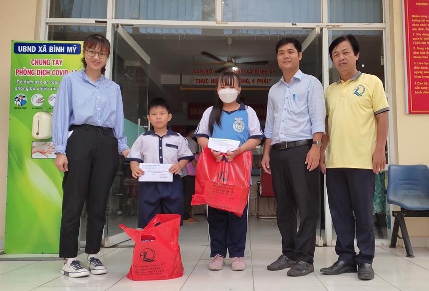 Đợt này, Quỹ Bảo trợ trẻ em tỉnh Bình Dương thực hiện trao hỗ trợ “Bảo trợ dài hạn” cho trẻ em có hoàn cảnh khó khăn có người thân mất vì nhiễm bệnh Covid-19 cho 2 trẻ em xã Bình Mỹ và 1 trẻ em xã Thường Tân từ tháng 3/2022 đến tháng 8/2022 với tổng số tiền 12.600.000 đồng (600.000 đồng/tháng).