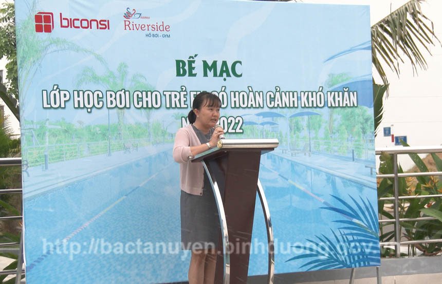 Sáng ngày 20-7, Phòng Lao động – Thương binh và Xã hội huyện Bắc Tân Uyên đã tổ chức bế giảng lớp học bơi cho trẻ em có hoàn cảnh khó khăn năm 2022 tại hồ bơi Câu lạc bộ Thể thao Riverside, đường D2, Khu nhà ở Biconsi Riverside, phường Uyên Hưng, thị xã Tân Uyên. Đến dự buổi lễ bế giảng lớp học, có bà Nguyễn Kim Nguyên - Phó Trưởng phòng Lao động – Thương binh và Xã hội huyện; bà Nguyễn Thị Tuyết – Phó trưởng Phòng Giáo dục và Đào tạo huyện; ông Huỳnh Văn Quân – đại diện Hồ bơi Câu lạc bộ Thể thao Riverside, cùng đại diện các ban, ngành của huyện.