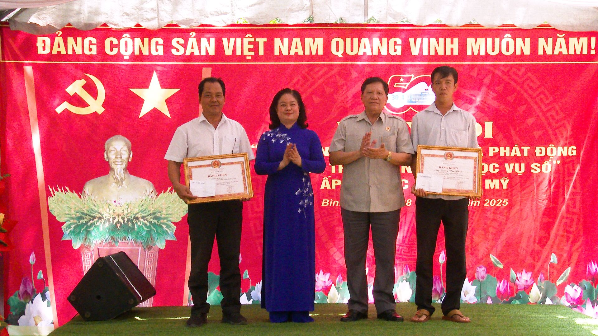 Dịp này, ban tổ chức đã trao Bằng khen của Chủ tịch UBND tỉnh cho 1 tập thể, 1 cá nhân vì đã có nhiều đóng góp trong triển khai, thực hiện ra quân Ngày thứ 7 văn minh và trao giấy khen của Chủ tịch UBND xã Bình Mỹ cho 23 cá nhân vì có nhiều đóng góp cho sự phát triển của xã Bình Mỹ giai đoạn 1975-2025.