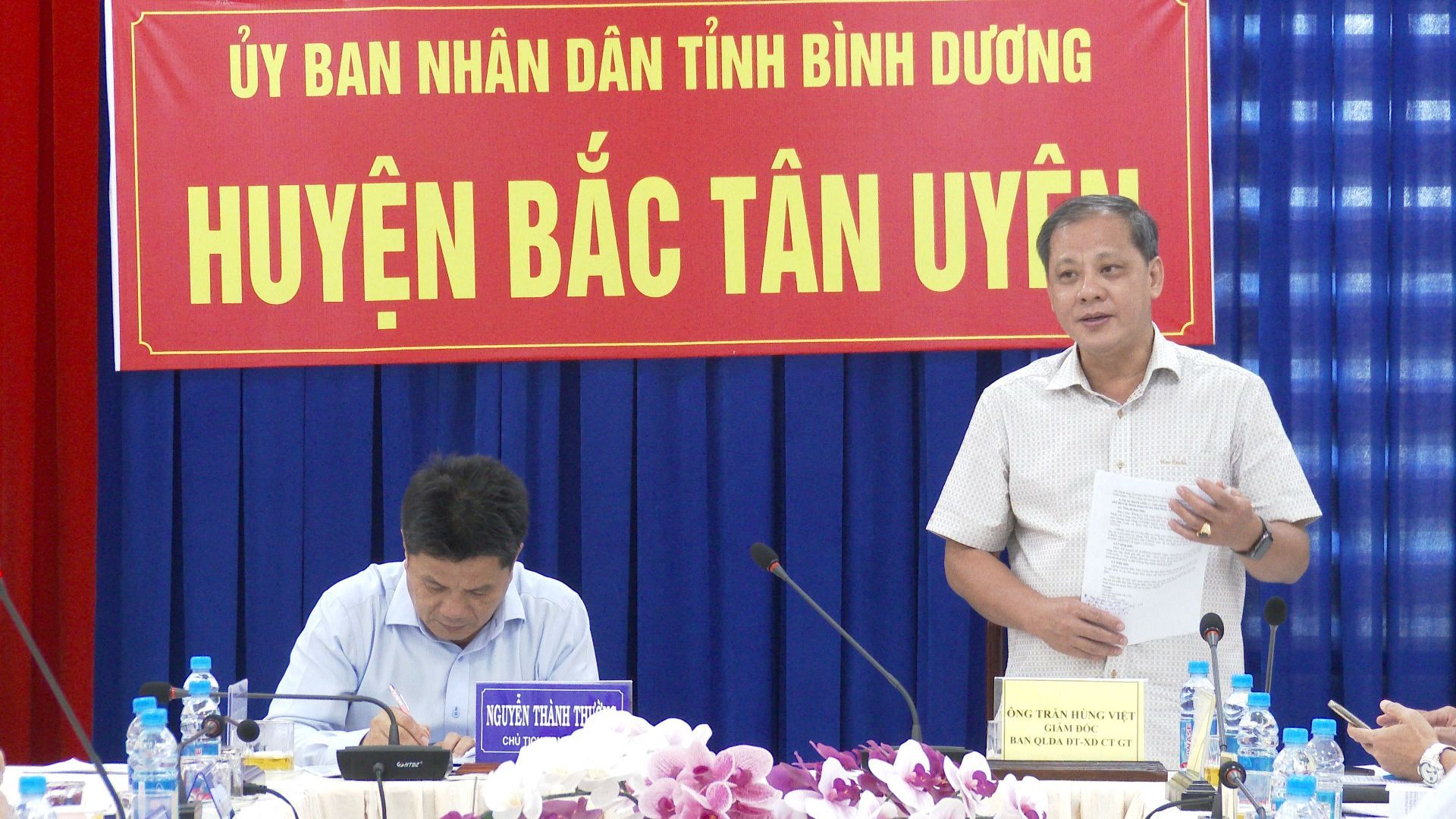 Phát biểu tại buổi làm việc, ông Trần Hùng Việt - Giám đốc Ban Quản lý dự án đầu tư xây dựng công trình giao thông tỉnh Bình Dương ghi nhận, đánh giá cao những nỗ lực, sự hỗ trợ của các ngành, các cấp của huyện Bắc Tân Uyên trong quá trình thực hiện các dự án trong thời gian qua; đồng thời lưu ý một số vấn đề. Đối với dự án xây dựng đường và cầu Vàm Tư và nâng cấp, mở rộng đường ĐT.747a đoạn từ dốc Bà Nghĩa đến ngã ba Cổng Xanh cố gắng sớm hoàn thành để quyết toán dự án. Đối với công trình đường Thủ Biên - Đất Cuốc, địa phương sớm có kế hoạch bàn giao mặt bằng để Ban yêu cầu đơn vị thi công xây dựng kế hoạch tổ chức thực hiện hoàn thành dự án theo tiến độ. Đối với công trình nâng cấp, mở rộng đường ĐT.746 đoạn từ ngã ba Tân Thành đến ngã ba Hội Nghĩa, địa phương cần phối hợp với Ban khảo sát lại các vị trí còn vướng ảnh hưởng trực tiếp đến mặt bằng thi công để đẩy nhanh tiến độ thực hiện. Bên cạnh đó, ông Trần Hùng Việt cũng mong muốn UBND huyện, các ngành, UBND các xã thị trấn có công trình thực hiện tiếp tục hỗ trợ Ban để thực hiện đảm bảo các dự án, công trình.