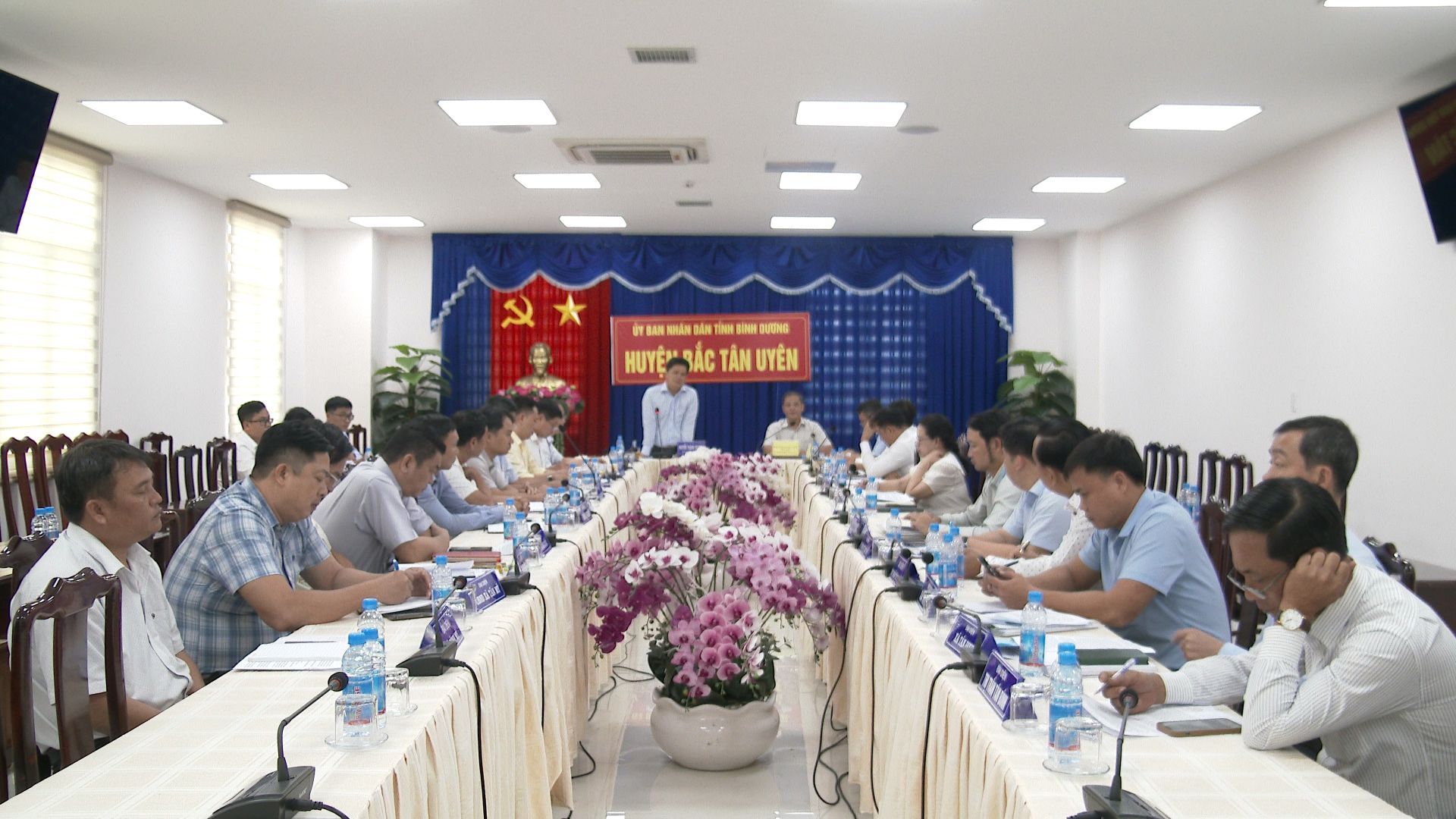 Tại cuộc họp, Trung tâm phát triển quỹ đất tỉnh, huyện đã báo tiến độ thực hiện, công tác phối hợp trong quá trình triển khai thực hiện đối với các dự án trên địa bàn huyện. Theo báo cáo, đối với dự án giải phóng mặt bằng công trình đường Thủ Biên - Đất Cuốc, đến nay đã hoàn thành công tác phê duyệt phương án bồi thường, hỗ trợ 139 hộ, tổ chức với số tiền hơn 197 tỷ 733 triệu đồng; đã bàn giao mặt bằng đạt 100% để triển khai thực hiện; đã chi tiền bồi thường 137 hộ, tổ chức với số tiền hơn 195 tỷ 918 triệu đồng; còn 2 hộ chưa nhận tiền và 1 hộ chưa nhận bổ sung với số tiền hơn 1 tỷ 814 triệu đồng; đối với công trình xây dựng đường và cầu Vàm Tư đã hoàn thành công tác phê duyệt phương án 110 hộ, tổ chức với số tiền 84,799 tỷ đồng; đã chi tiền cho 110 hộ, tổ chức với số tiền 84,721 tỷ đồng. Tuy nhiên còn 87 triệu đồng chưa chi do vướng về điều kiện cấp giấy chứng nhận và bồi thường về đất, tranh chấp giữa các hộ.Đối với công trình nâng cấp, mở rộng đường ĐT.746 đoạn từ ngã ba Tân Thành đến ngã ba Hội Nghĩa, đã phê duyệt phương án bồi thường 690 trên 691 hồ sơ, với tổng số tiền 1.070,8 tỷ đồng. Đến nay, đã chi 686 hồ sơ với số tiền 1.064,7 tỷ đồng; còn 3 hồ sơ chưa nhận tiền và 1 hồ sơ chưa bàn giao giấy chứng nhận để chỉnh giảm diện tích thu hồi đất; UBND huyện đã bàn hành quyết định bồi thường bổ sung tài sản trên đất 246 trường hợp; đã chi 233 hồ sơ; còn 13 hồ sơ chưa nhận tiền. Đến nay, đã có 656 trên 691 hộ, tổ chức bàn giao mặt bằng với 129.674,6 mét vuông; còn 35 trường hợp đang trong quá trình bồi thường nhà, vận động thanh lý tài sản trên đất để bàn giao. Đối với công trình nâng cấp, mở rộng đường ĐT.747a đoạn từ dốc Bà Nghĩa đến ngã ba Cổng Xanh, đã cơ bản hoàn thành chỉ còn 1 hộ hiện đang được tiến hành các thủ tục để thực hiện trong thời gian tới. Đối với dự án đường cao tốc Thành Phố Hồ Chí Minh - Thủ Dầu Một - Chơn Thành, huyện đã nhận công bố chủ trương đầu tư dự án đến người có đất bị thu hồi; đã tham mưu kế hoạch thực hiện công tác bồi thường, giải phóng mặt bằng.