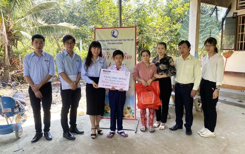 Phối hợp với Quỹ Bảo trợ trẻ em tỉnh, Công ty TNHH Nhãn mác và Bao bì Maxim Việt Nam trao tài trợ cho em Phan Thanh Điền, sinh năm 2010, thị trấn Tân Bình với kinh phí hỗ trợ là 4 triệu đồng, thời gian hỗ trợ 4 tháng (từ tháng 09 đến tháng 12/2022).