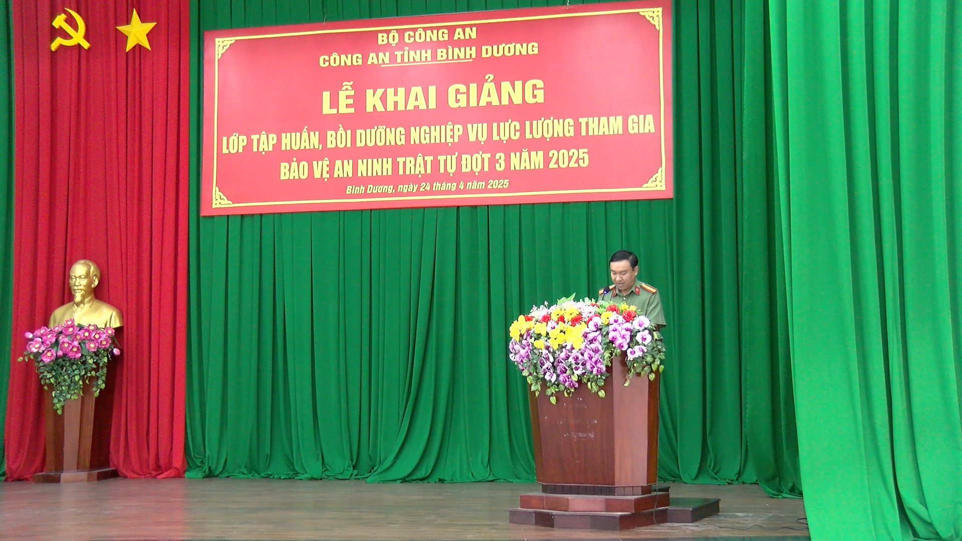 Sáng ngày 24/4, tại Hội trường Trung Tâm chính trị huyện Bắc Tân Uyên, Công an tỉnh Bình Dương tổ chức khai giảng lớp tập huấn, bồi dưỡng nghiệp vụ lực lượng tham gia bảo vệ ANTT đợt 3 năm 2025 cho 240 học viên là Tổ trưởng, Tổ phó và Tổ viên Tổ bảo vệ ANTT ở cơ sở trên địa bàn huyện Bắc Tân Uyên và thành phố Tân Uyên. Dự khai giảng lớp tập huấn có Thượng tá Ngô Văn Tùng – Phó trưởng phòng Tham mưu Công an tỉnh và lãnh đạo các đội nghiệp vụ.