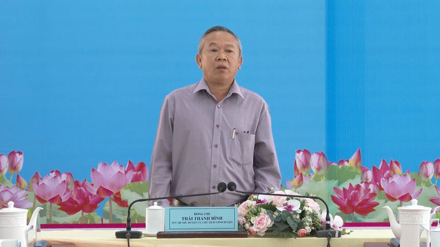 Phát biểu giao nhiệm vụ, đồng chí Thái Thanh Bình – Tỉnh Ủy viên-Bí thư Huyện ủy-Chủ tịch UBND huyện đã chúc mừng và mong muốn các đồng chí được điều động về địa phương tiếp cận nhanh với công việc; trong công tác quản lý luôn gần dân, sát cơ sở, không quan liêu, quan khách; tiếp tục rèn luyện, phấn đấu, phát huy tính tiên phong gương mẫu, hoàn thành tốt nhất trọng trách được giao.
