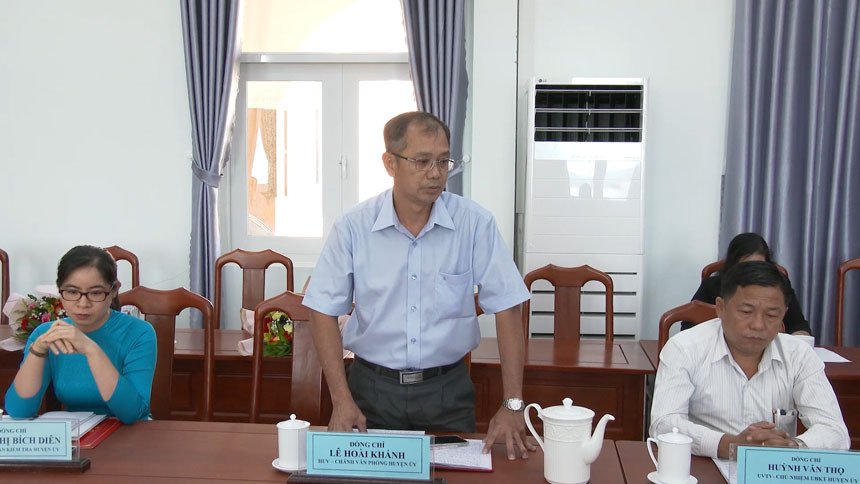 Đại diện cho các đồng chí vừa được Ban Thường vụ Huyện uỷ trao quyết định điều động, chỉ định giữ chức vụ mới, đồng chí Lê Hoài Khánh hứa sẽ quyết tâm học hỏi, luôn nỗ lực, không ngừng rèn luyện, học tập, phát huy hết trách nhiệm của người đứng đầu, quyết tâm hoàn thành tốt nhiệm vụ được giao.