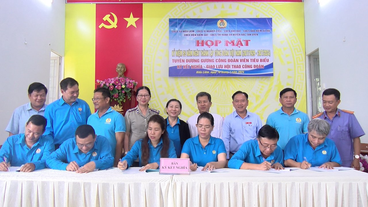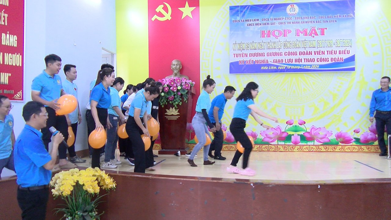 Nhân kỷ niệm 95 năm ngày thành lập Công đoàn Việt Nam, sáng ngày 18/7 tại UBND xã Hiếu Liêm, 6 công đoàn cơ sở trực thuộc Liên đoàn lao động (LĐLĐ) huyện gồm: CĐCS xã Hiếu Liêm, CĐCS Xí nghiệp Công trình công cộng, CĐCS Viện kiểm sát, CĐCS Bảo hiểm xã hội, CĐCS Kho Bạc và CĐCS Thi hành án tổ chức đã phối hợp tổ chức Chương trình “Giao lưu họp mặt kỷ niệm 95 năm ngày thành lập công đoàn Việt Nam (28/7/1929 - 28/7/2024). Tham dự chương trình có ông Trần Hữu Phúc - HUV, Chủ tịch LĐLĐ huyện; ông Nguyễn Văn Thanh - Chánh án tòa án huyện Bắc Tân Uyên; ông Bùi Trí Dũng - Phó Viện trưởng Viện kiểm sát; bà Phạm Thị Liên - GĐ Kho bạc huyện; bà Nguyễn Tuyết Phượng - Chi cục trưởng Thi hành án huyện; ông Nguyễn Kim Long - GĐ Bảo hiểm xã hội huyện; ông Nguyễn Lê Minh - GĐ Xí nghiệp công trình công cộng huyện; ông Nguyễn Phước Thiện - P.BT Đảng ủy - Trưởng Khối vận xã Hiếu Liêm và ông Mai Đức Qúy - P.BT Đảng ủy - CT UBND xã Hiếu Liêm cùng hơn 100 đoàn viên công đoàn của 6 đơn vị.