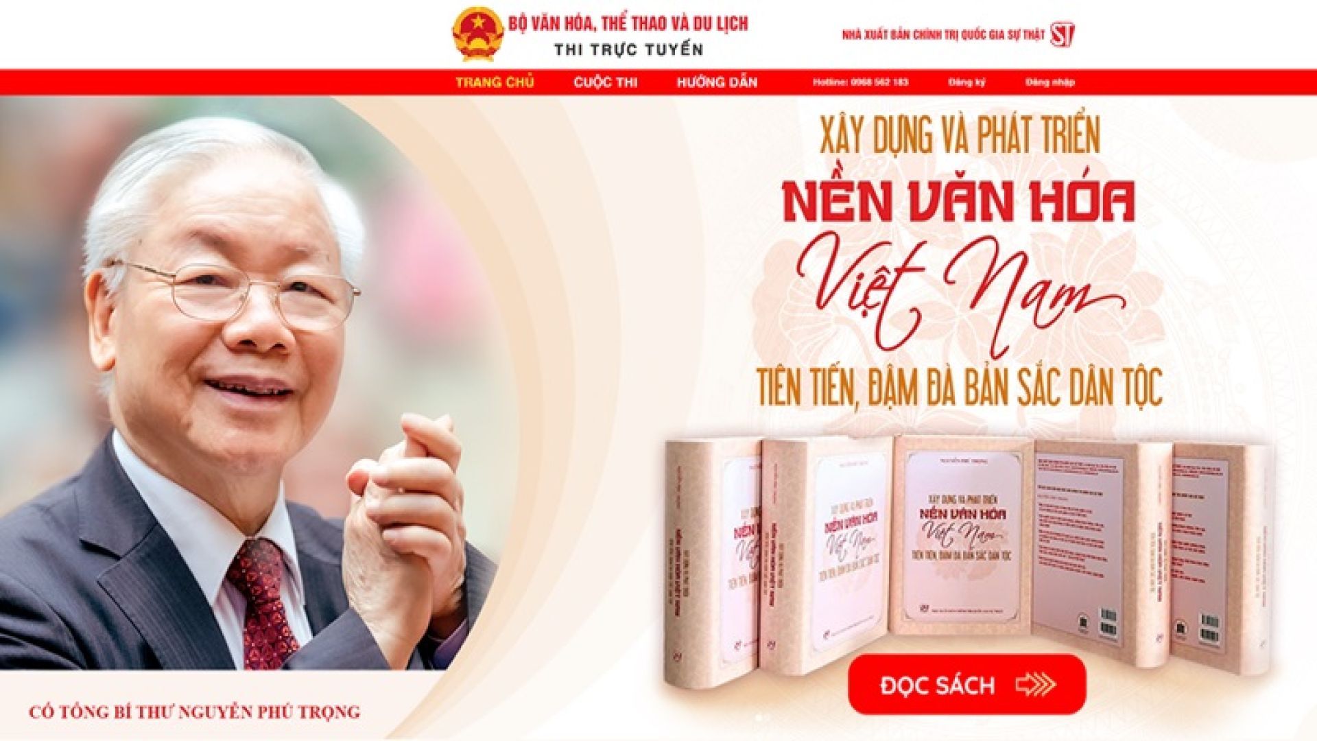 Bộ Văn hóa, Thể thao và Du lịch đã phát động Cuộc thi trực tuyến toàn quốc tìm hiểu nội dung cuốn sách “Xây dựng và phát triển nền văn hóa Việt Nam tiên tiến, đậm đà bản sắc dân tộc” của cố Tổng Bí thư Nguyễn Phú Trọng.