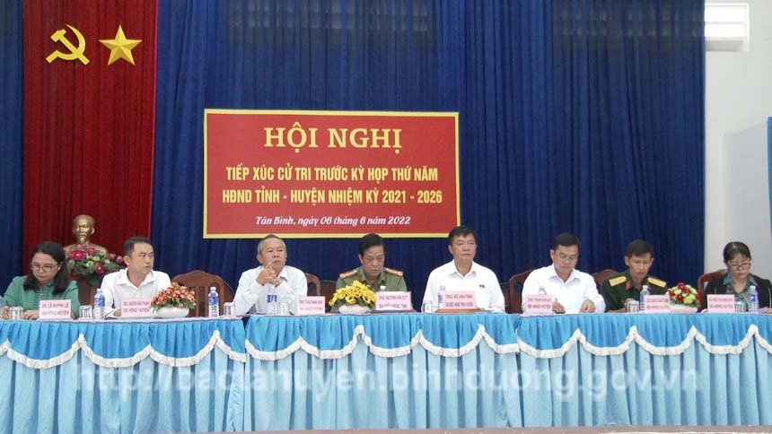 Ngày 6-6, ông Nguyễn Văn Dựt, ông Võ Văn Tính đại biểu HĐND tỉnh Bình Dương cùng các đại biểu HĐND huyện Bắc Tân Uyên đã có buổi tiếp xúc với cử tri thị trấn Tân Thành, Tân Bình, xã Bình Mỹ, Tân Lập, Đất Cuốc trước kỳ họp thứ 5 HĐND tỉnh - huyện, nhiệm kỳ 2021 - 2026. Tham dự Hội nghị còn có đại diện các cơ quan, ban ngành đoàn thể huyện và đông đảo cử tri của các xã, thị trấn.