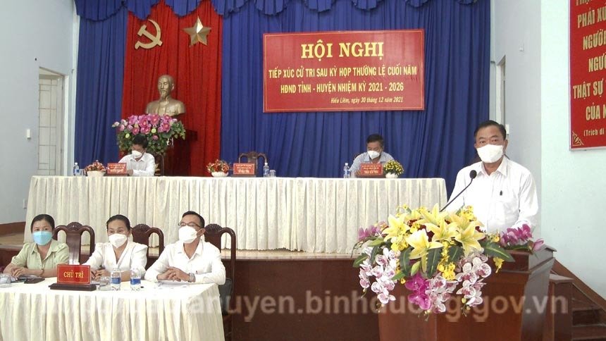 Trong 2 ngày 30 và 31-12, đại biểu Hội đồng nhân dân Tỉnh cùng các đại biểu HĐND Huyện đã có các buổi tiếp xúc cử tri các xã, thị trấn: Tân Bình, Bình Mỹ, Tân Định, Hiếu Liêm, Lạc An, Tân Mỹ và Thường Tân tại hội trường UBND các địa phương. Tham dự buổi tiếp xúc cử tri sau kỳ họp thường lệ cuối năm 2021 HĐND tỉnh, huyện, nhiệm kỳ 2021-2026 có ông Nguyễn Văn Dựt và ông Võ Văn Tính là đại biểu HĐND tỉnh; cùng các đại biểu HĐND huyện, đại diện các cơ quan, ban ngành, đoàn thể huyện và đông đảo cử tri các địa phương.