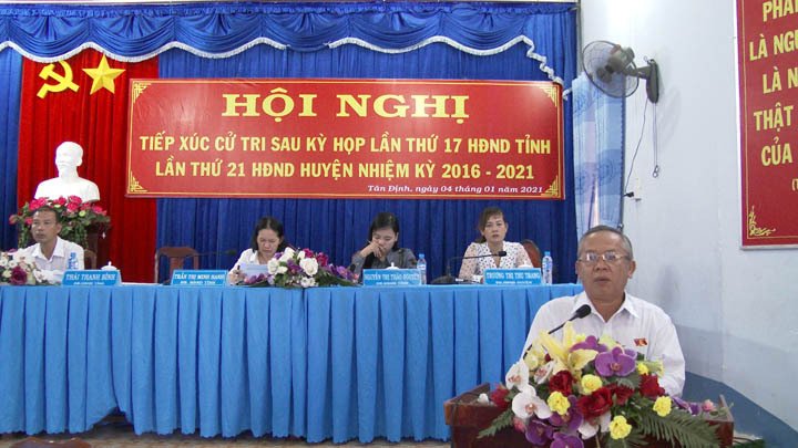 Thay mặt Tổ đại biểu HĐND tỉnh, huyện ông Thái Thanh Bình - Tỉnh ủy viên-Bí thư Huyện ủy-Chủ tịch UBND huyện đã trả lời làm rõ một số ý kiến phản ánh của cử tri, đối với các kiến nghị thuộc thẩm quyền cấp huyện, xã, ông đề nghị lãnh đạo địa phương quan tâm, xem xét, giải quyết. Đồng thời, chia sẽ thêm một số vấn đế về tình hình KT-XH của huyện và vận động nhân dân thực hiện tốt các chính sách pháp luật, tích cực cùng chung tay xây dựng nông thôn mới.