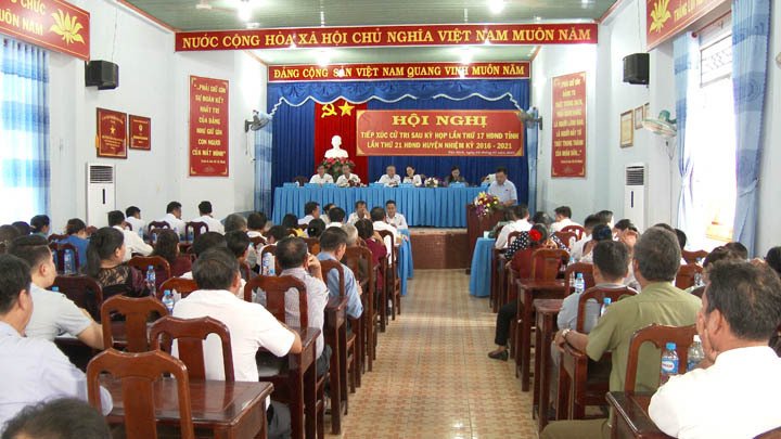 Sau khi nghe các đại biểu HĐND tỉnh, huyện báo cáo với cử tri về tóm tắt kết quả kỳ họp lần thứ 17 HĐND tỉnh và lần thứ 21 HĐND huyện và báo cáo trả lời ý kiến, kiến nghị của cử tri tại các buổi tiếp xúc cử tri trước kỳ họp. Cử tri rất vui mừng phấn khởi trước sự phát triển của tỉnh và huyện trong năm qua.