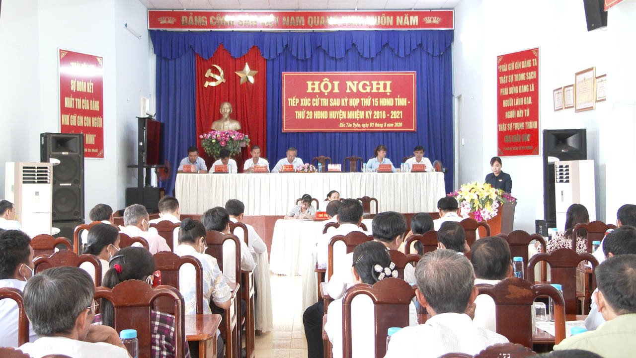 Tại buổi tiếp xúc, cử tri được nghe đại biểu HĐND tỉnh, huyện báo cáo kết quả kỳ họp HĐND tỉnh lần thứ 15, kỳ họp HĐND huyện lần thứ 20, báo cáo tóm tắt tình hình KT-XH, QP-AN của huyện 6 tháng đầu năm 2020; trả lời ý kiến, kiến nghị của cử tri trước kỳ họp HĐND tỉnh lần thứ 15, kỳ họp HĐND huyện lần thứ 20.