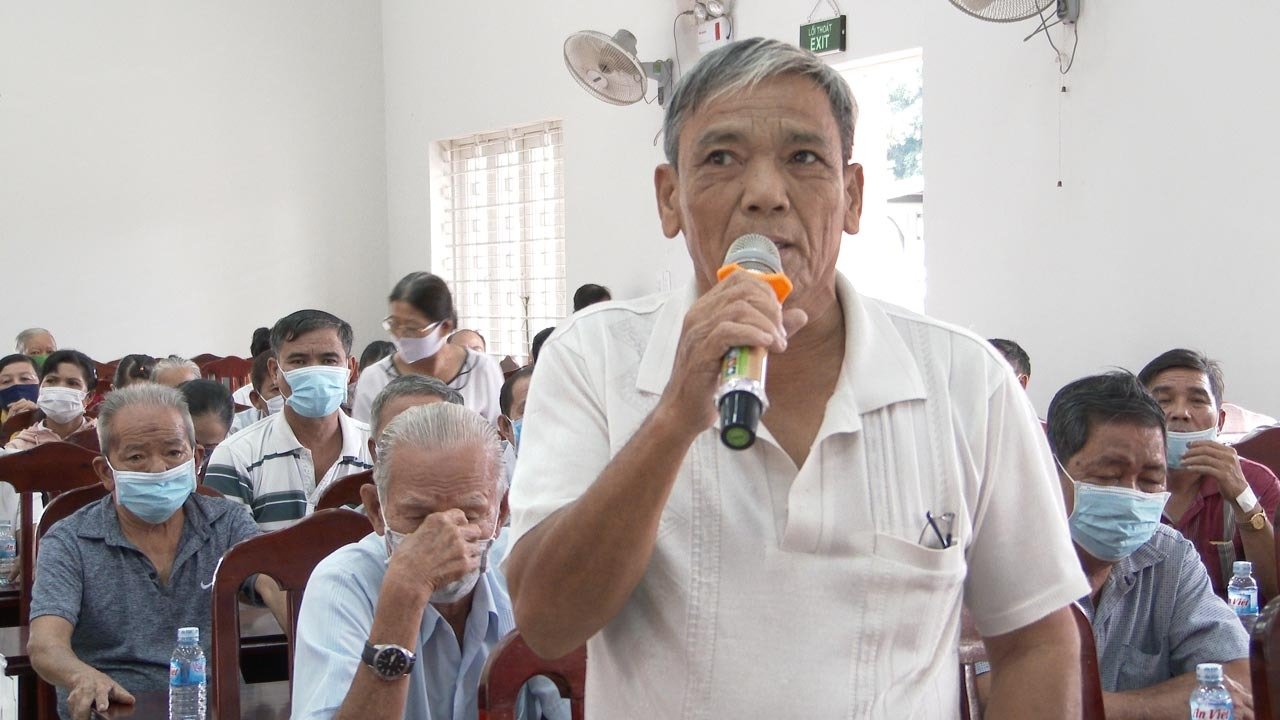 Ông Trần Văn Đương cử tri xã Tân Bình phát biểu ý kiến tại buổi tiếp xúc
