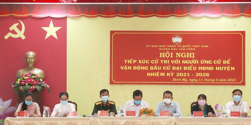 Ngày 11-5, tại tổ bầu cử số 2 xã Bình Mỹ, Ban thường trực Ủy ban Mặt trận Tổ quốc Việt Nam huyện Bắc Tân Uyên tổ chức Hội nghị gặp mặt người ứng cử đại biểu Hội đồng nhân dân huyện, nhiệm kỳ 2021-2026.