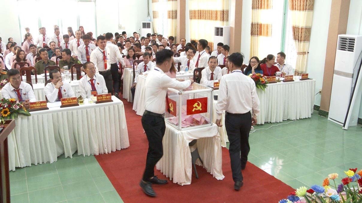 ĐH đã tiến hành bỏ phiếu bầu Ban Chấp hành Đảng bộ khoá mới, bầu đoàn đạibiểu đi dự đại hội cấp trên