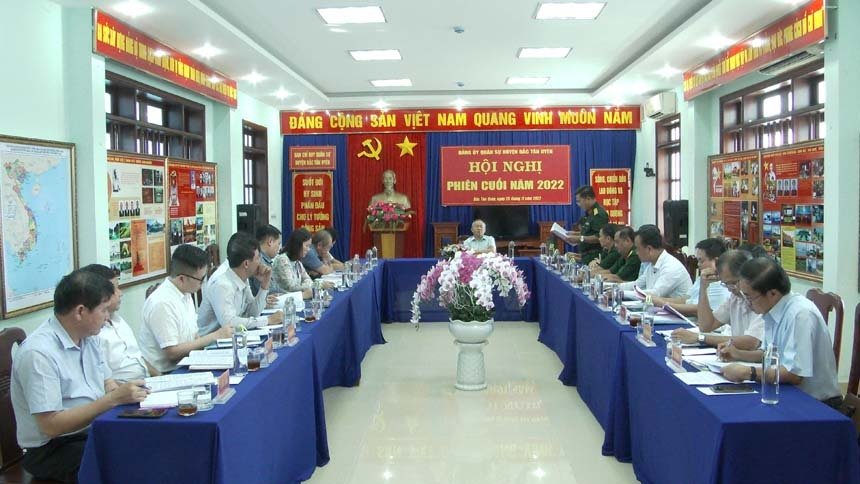 Trong năm 2022, Đảng ủy, Ban Chỉ huy Quân sự huyện đã quán triệt sâu sắc nghị quyết, chỉ thị, mệnh lệnh của cấp trên và tình hình nhiệm vụ quân sự, quốc phòng địa phương; thực hiện tốt công tác tuyển chọn và gọi công dân nhập ngũ năm 2022 đạt 100% chỉ tiêu; chỉ đạo tổ chức tập huấn, huấn luyện cho các đối tượng đúng nội dung, chương trình; tổ chức thành công diễn tập chiến đấu phòng thủ và diễn tập phòng, chống lụt bão, tìm kiếm cứu nạn tại 5 xã, thị trấn trong huyện; thực hiện chế độ chính sách đối với hậu phương quân đội; đóng góp các loại quỹ: đền ơn đáp nghĩa, nhà đồng đội, nhà tình đồng đội, vì người nghèo; tổ chức học tập quán triệt các nghị quyết, chỉ thị cho 100% cán bộ, đảng viên trong lực lượng vũ trang huyện.
