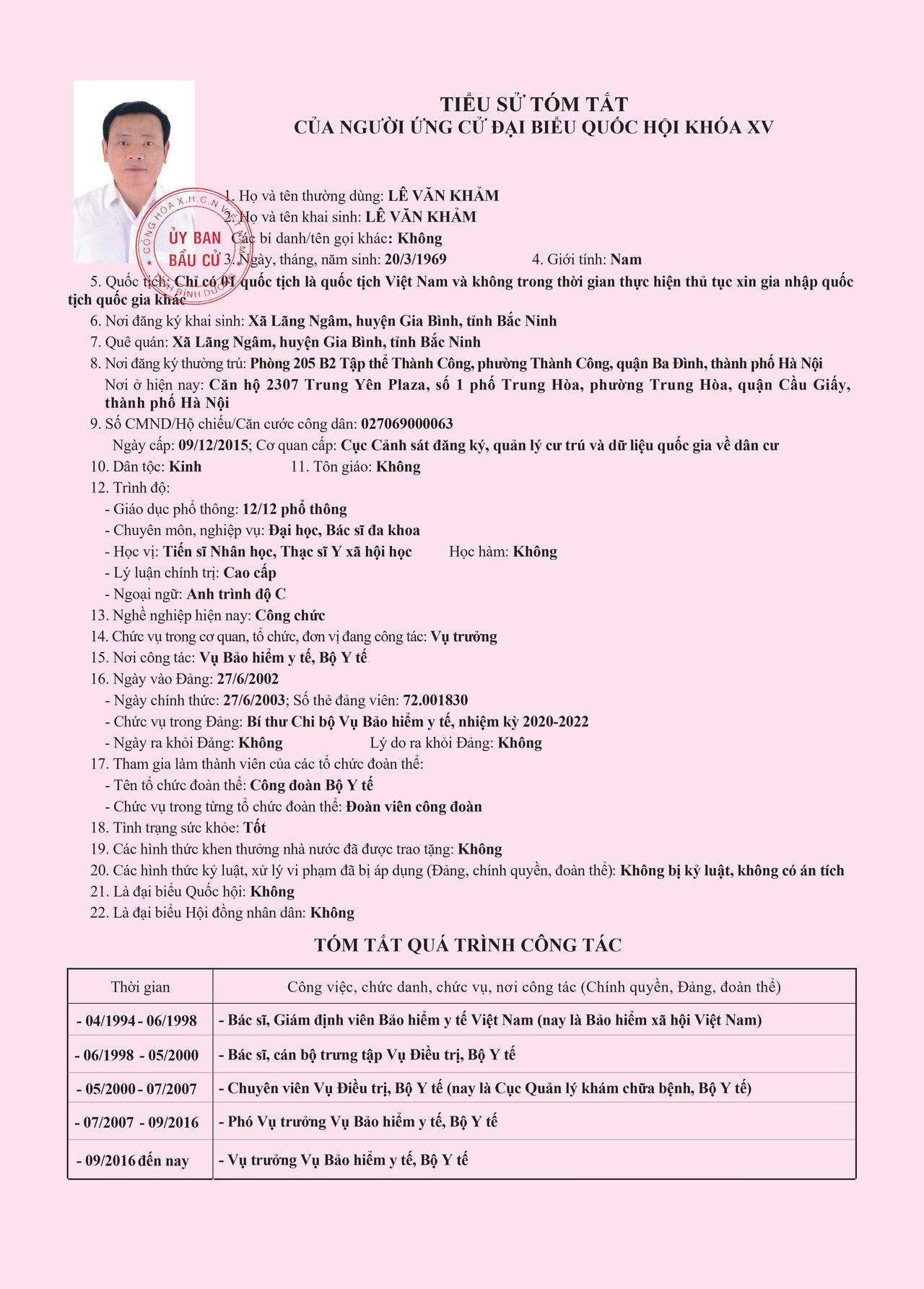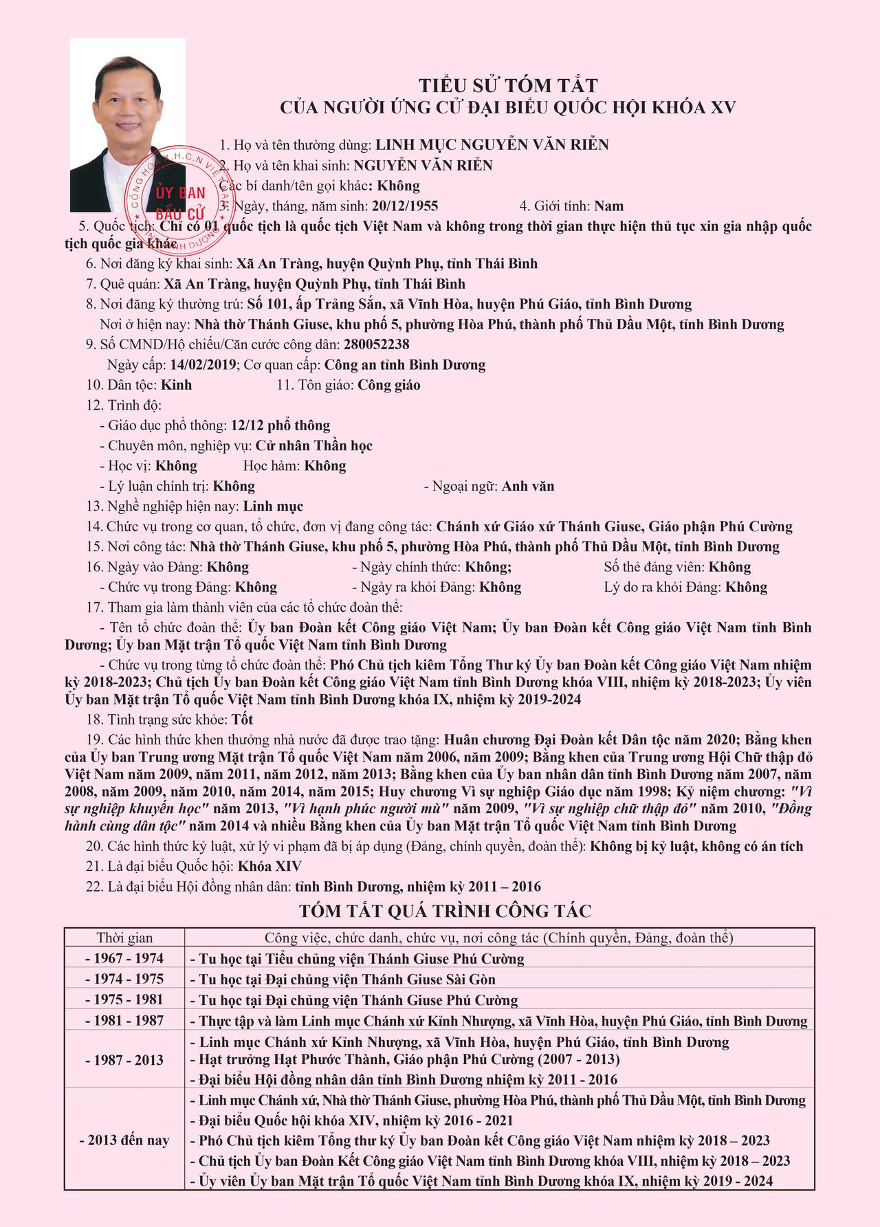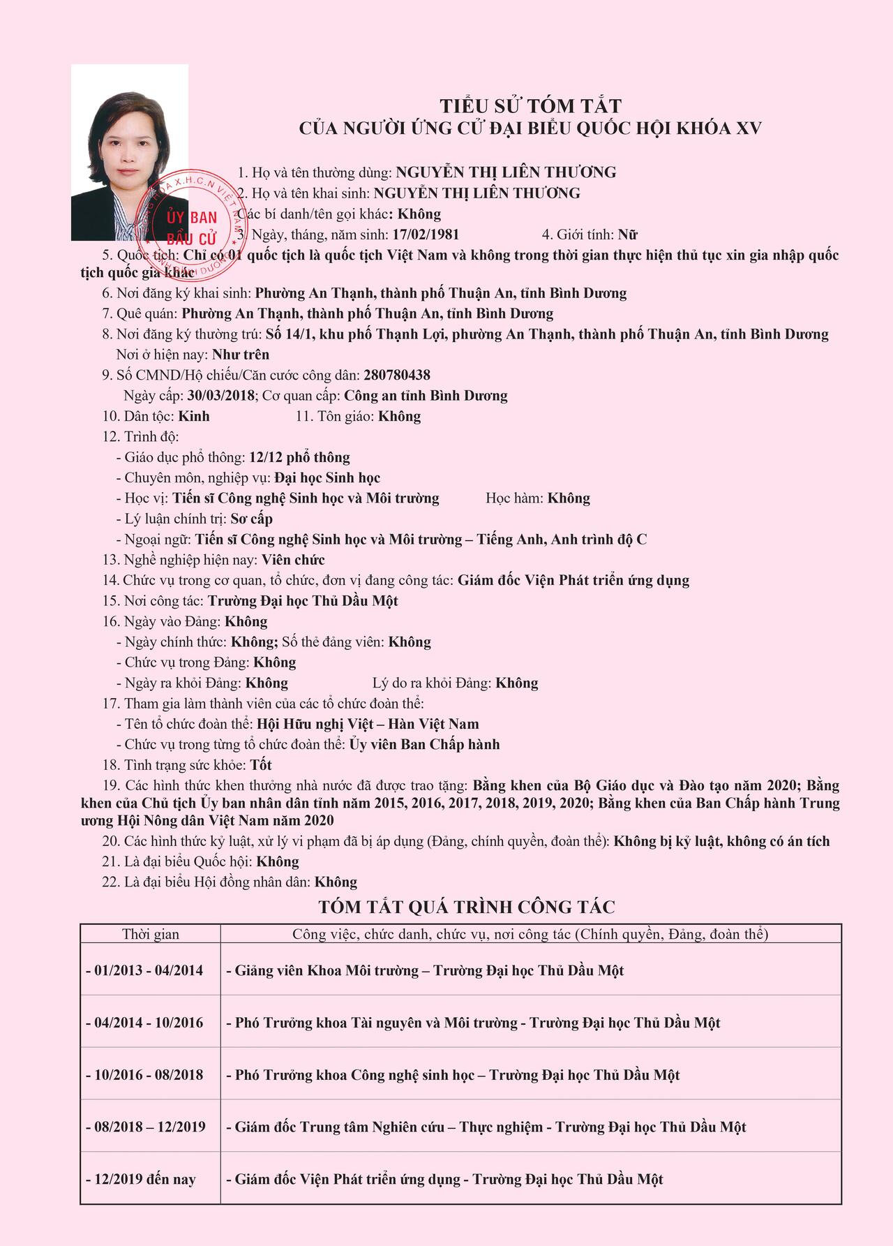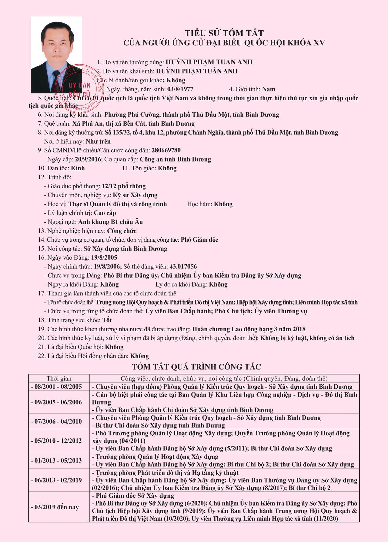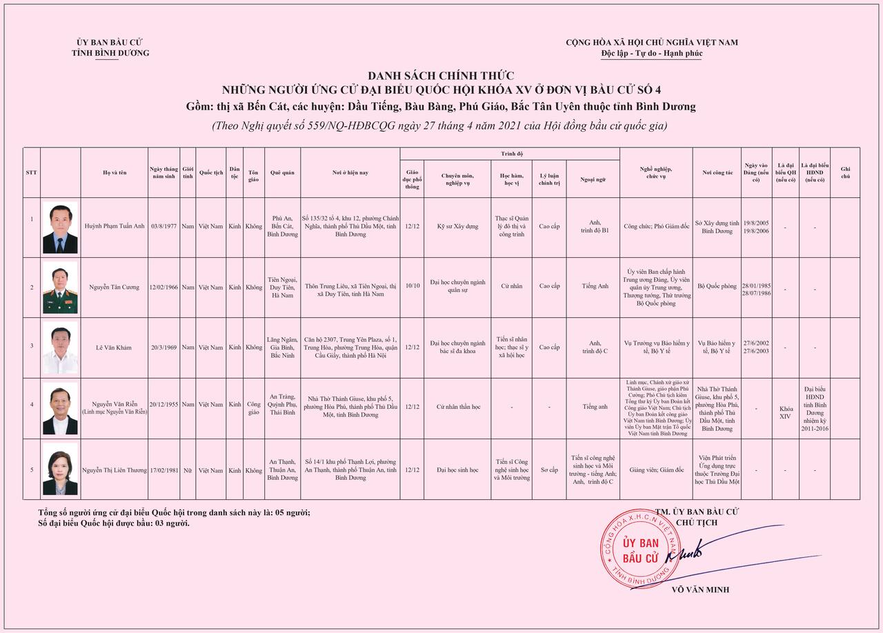 DANH SÁCH CHÍNH THỨC VÀ TIỂU SỬ NHỮNG NGƯỜI ỨNG CỬ ĐẠI BIỂU QUỐC HỘI KHÓA XV Ở ĐƠN VỊ BẦU CỬ SỐ 4 (BẮC TÂN UYÊN)