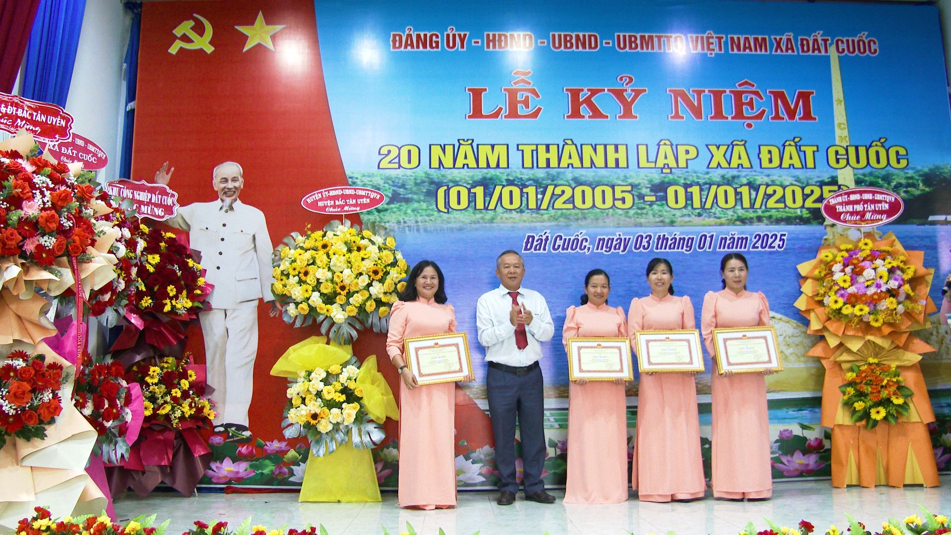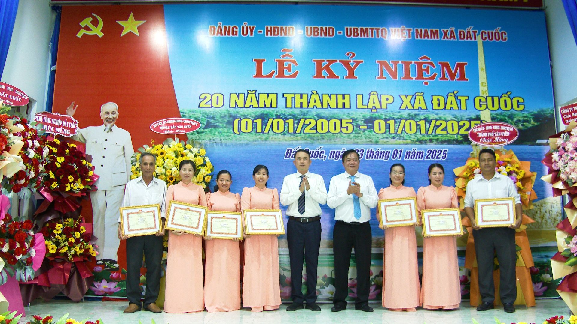 Dịp này, Ban tổ chức đã trao giấy khen của Chủ tịch UBND huyện cho 5 tập thể, 9 cá nhân, trao giấy khen của Chủ tịch UBND xã cho 7 tập thể, 5 công ty và 27 cá nhân có thành tích tiêu biểu đóng góp cho sự phát triển kinh tế xã hội, quốc phòng an ninh của xã Đất Cuốc qua 20 năm; trao tặng 65 phần quà cho các đồng chí lãnh đạo, cán bộ công chức xã Đất Cuốc qua các thời kỳ.