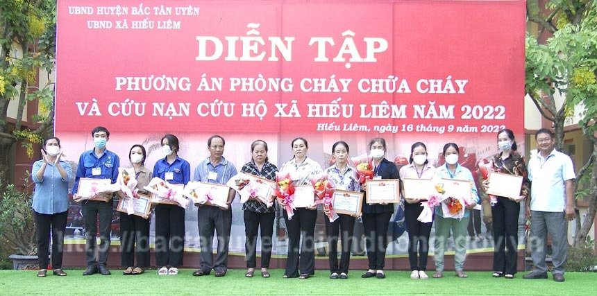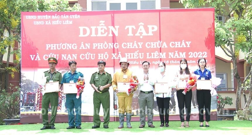 Qua hơn 15 phút diễn ra, cuộc diễn tập phương án chữa cháy và cứu nạn, cứu hộ tại xã Hiếu Liêm đã thành công tốt đẹp, an toàn về người và phương tiện. Ban tổ chức đã khen thưởng cho 6 tập thể và 37 cá nhân có thành tích xuất sắc trong diễn tập.