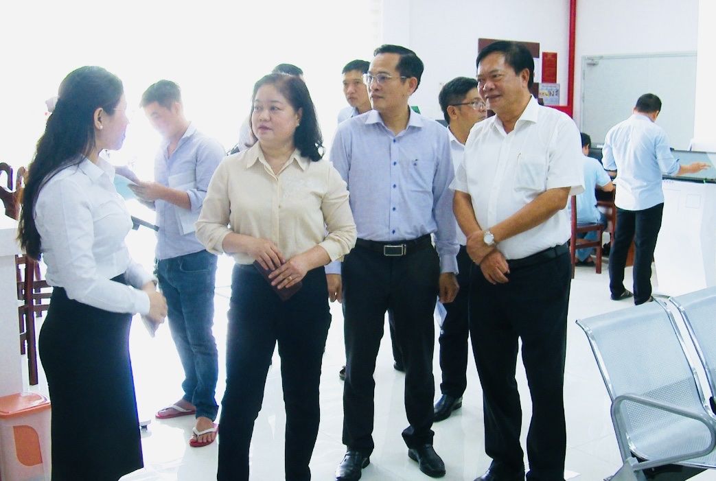 (đồng chí Nguyễn Thị Mỹ Hằng - Uỷ viên Thường vụ Tỉnh uỷ, Trưởng Ban Nội chính Tỉnh ủy đi khảo sát điều kiện các trụ sở)