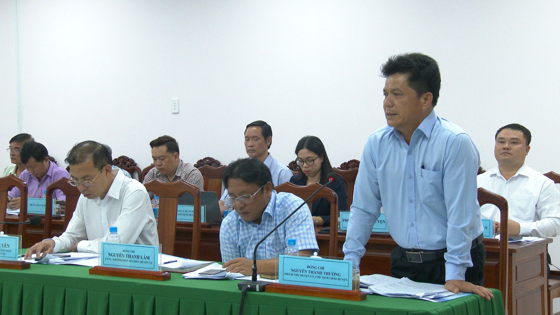 Đồng chí Nguyễn Thành Thường – Phó bí thư Huyện uỷ, Chủ tịch UBND huyện trình bày những khó khăn, vướng mắc