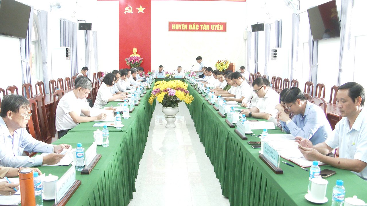 Tại buổi làm việc, lãnh đạo huyện đã báo cáo với đoàn công tác chuẩn bị năm học mới 2023 – 2024; tiến độ thực hiện Đề án 06; tiến độ thực hiện các dự án và giải ngân vốn đầu tư công; kết quả thực hiện trên lĩnh vực xây dựng Đàng, Đoàn thể. Cũng tại buổi làm việc lãnh huyện Bắc Tân Uyên và lãnh đạo các phòng ban của huyện đã đề xuất một số khó khăn vường mắt của huyện trong thực hiện các nhiệm vụ như: việc thiếu giáo viên của các trường công lập trên địa bàn huyện trước thềm năm học mới; công tác thẩm định giá đất thu hồi; trang thiết bị phục vụ nhập liệu phục vụ đề án 06 tại công an các xã, thị trấn; công tác giải quyết đất Nông lâm trường Chiến khu Đ.